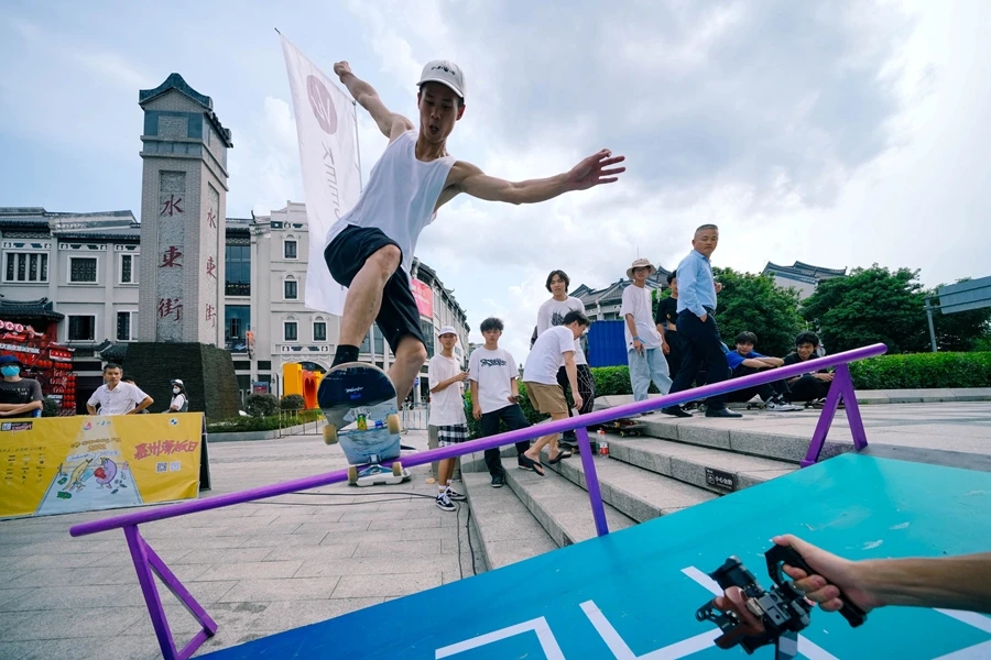 2022年7月16日,KEEP UP滑板俱樂(lè)部創(chuàng)新組織了一場(chǎng)聲勢(shì)浩大的惠州“滑板日”活動(dòng)。阿晉至今仍清楚記得,那場(chǎng)活動(dòng)吸引了來(lái)自全國(guó)各地600余名滑手參與;活動(dòng)中,大家一起盡情交流玩耍,表演各種高難度動(dòng)作,成就了惠州滑板史上其中一個(gè)“高光時(shí)刻”。