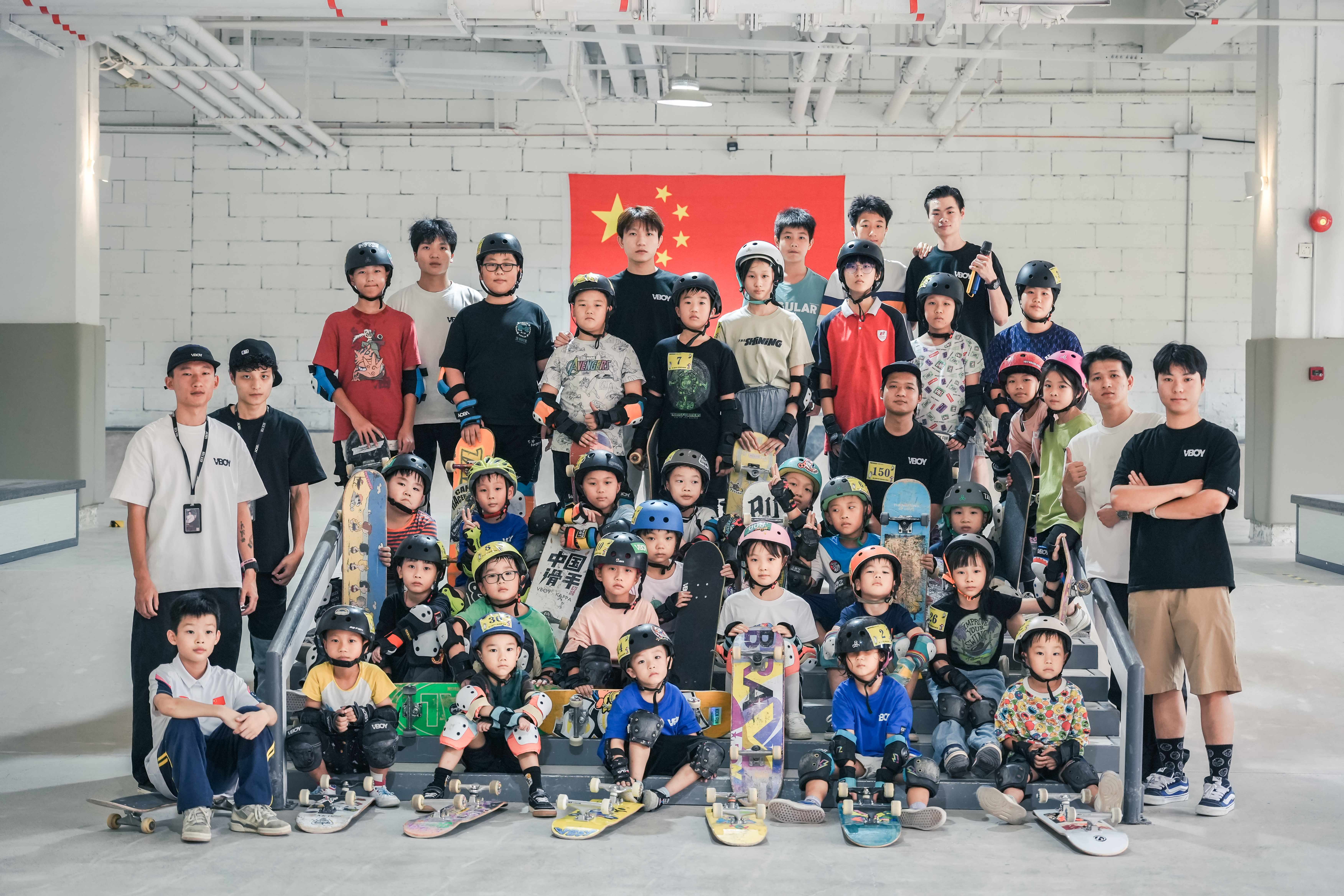 2019年,位于市區(qū)江北街道的VBOY滑板學(xué);葜菪^(qū)成立,起初僅有20多名,如今學(xué)員已增至1000人以上。圖為該校部分教練和學(xué)員的合影。