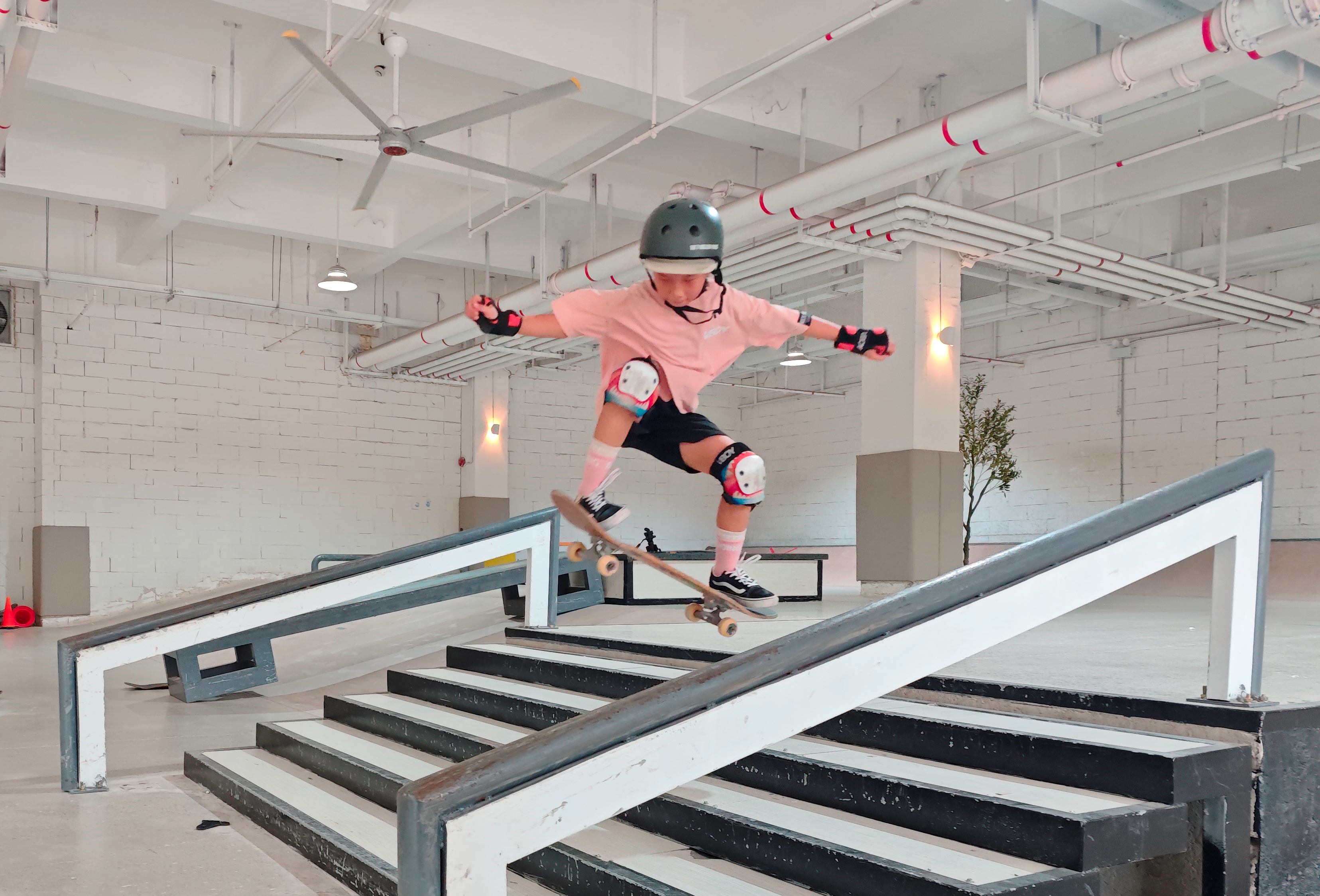 “過(guò)去人們常認(rèn)為玩滑板的多為男孩子,現(xiàn)實(shí)情況并非如此!蔽浠浹笳f(shuō),以他所在的滑板學(xué)校為例,男女比例大約為4:6,女學(xué)員占比超過(guò)一半。