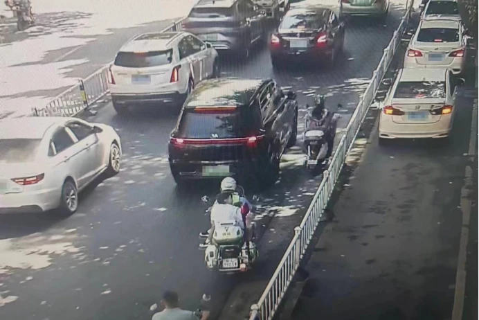 原來(lái),她的孩子發(fā)高燒,突然抽搐得很厲害,需緊急送往醫(yī)院醫(yī)治,到了醫(yī)院附近遇到交通擁堵,小車(chē)只能緩慢行駛,家長(zhǎng)心急如焚。情況危急,警員見(jiàn)狀立即請(qǐng)?jiān)撆勘е⒆幼骄媚ν熊?chē)后座,隨后一路亮警燈、鳴警笛、引導(dǎo)車(chē)流避讓,穿梭在車(chē)流中快速前進(jìn)。