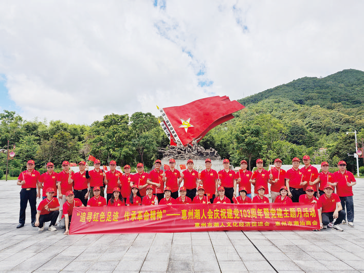 傳承紅色基因,筑夢美好未來。為進(jìn)一步強(qiáng)化黨建引領(lǐng),增強(qiáng)商會隊伍凝聚力,7月13日,惠州市潮人文化經(jīng)濟(jì)促進(jìn)會、惠州市潮汕商會(以下簡稱“惠州潮人會”)開展以“追尋紅色足跡 傳承革命精神”為主題的黨建活動,黨員干部、商會成員代表40余人走進(jìn)革命老區(qū)惠東高潭進(jìn)行參觀學(xué)習(xí),接受革命精神的洗禮;顒又荚谕ㄟ^重溫革命歷史,凝聚商會力量,以高質(zhì)量黨建推動經(jīng)濟(jì)社會高質(zhì)量發(fā)展,加速構(gòu)建新質(zhì)生產(chǎn)力。