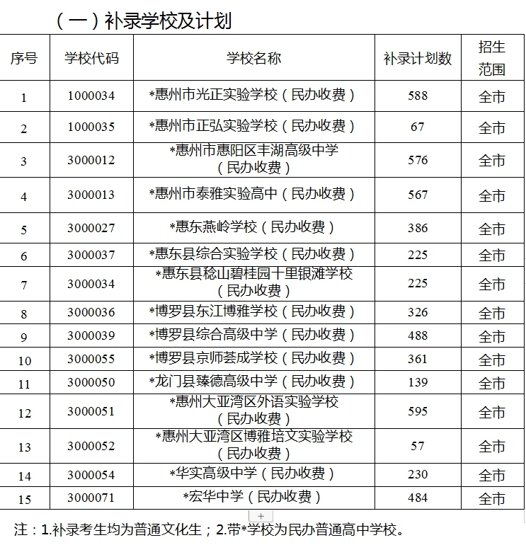 根據(jù)全市普通高中學(xué)校錄取結(jié)果,現(xiàn)就補(bǔ)錄學(xué)校及計劃公告如下:
