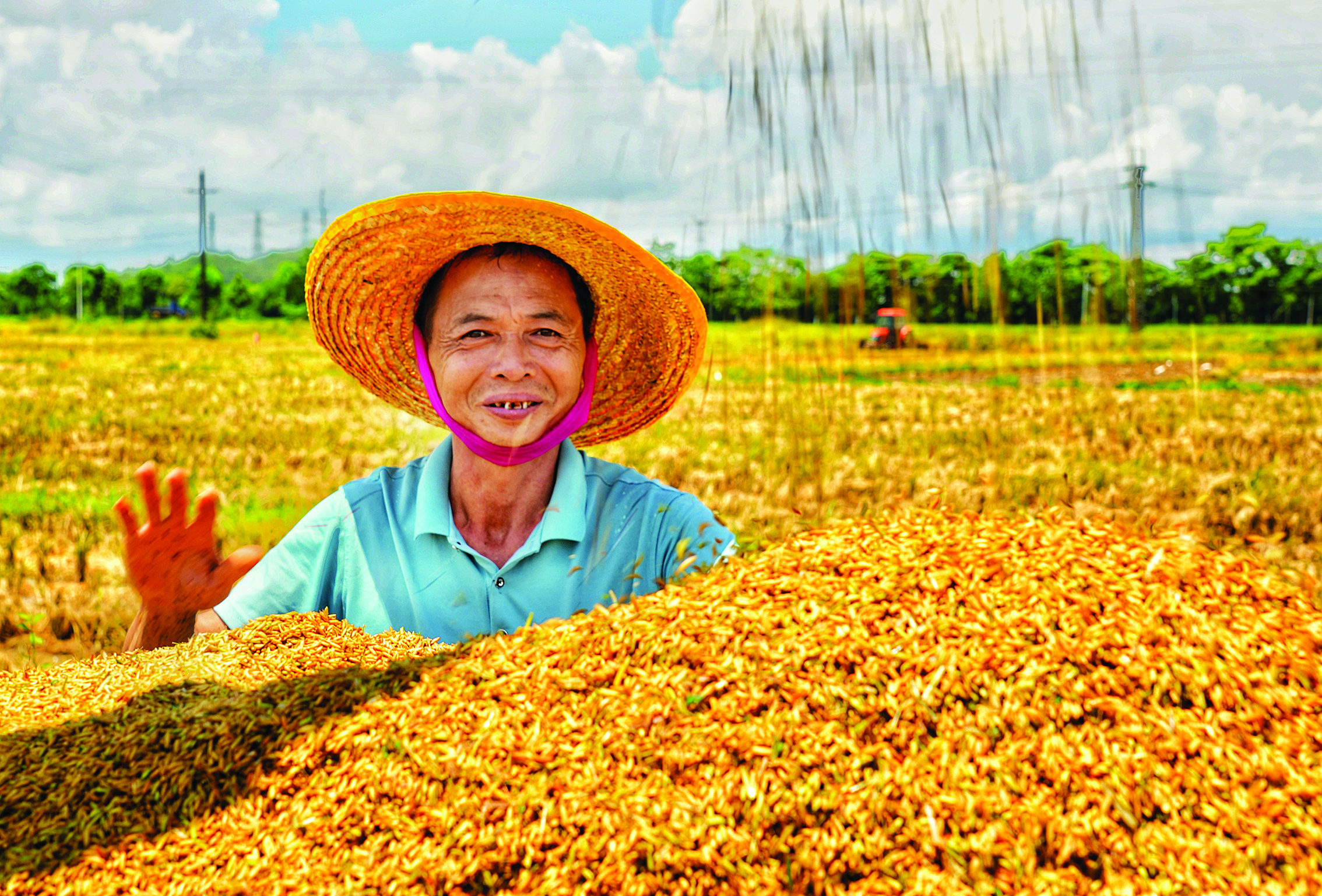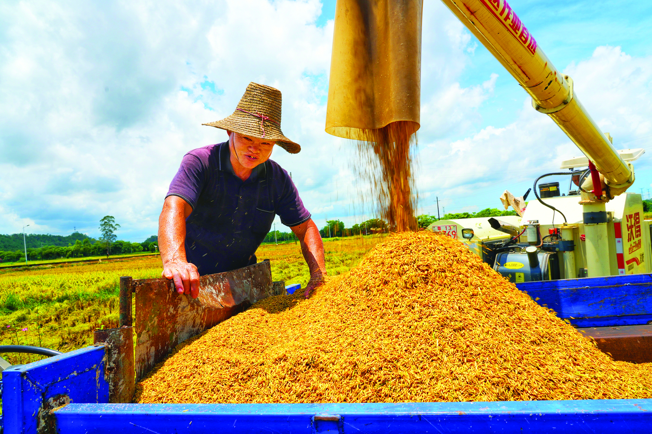 顆粒飽滿的稻谷裝滿了運輸車輛。