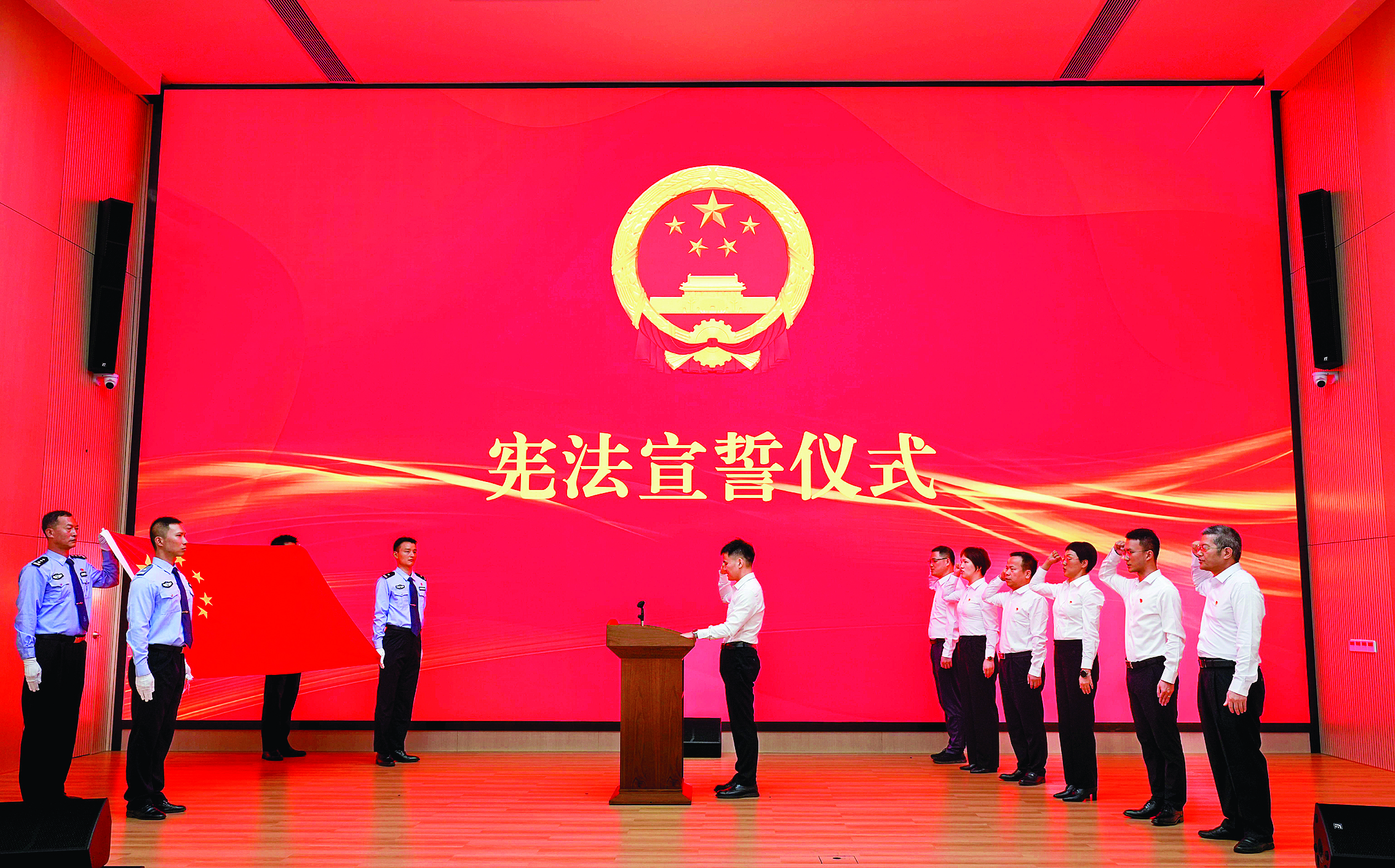 市政府行政復(fù)議官任命儀式上,7名市政府首批行政復(fù)議官向憲法宣誓。