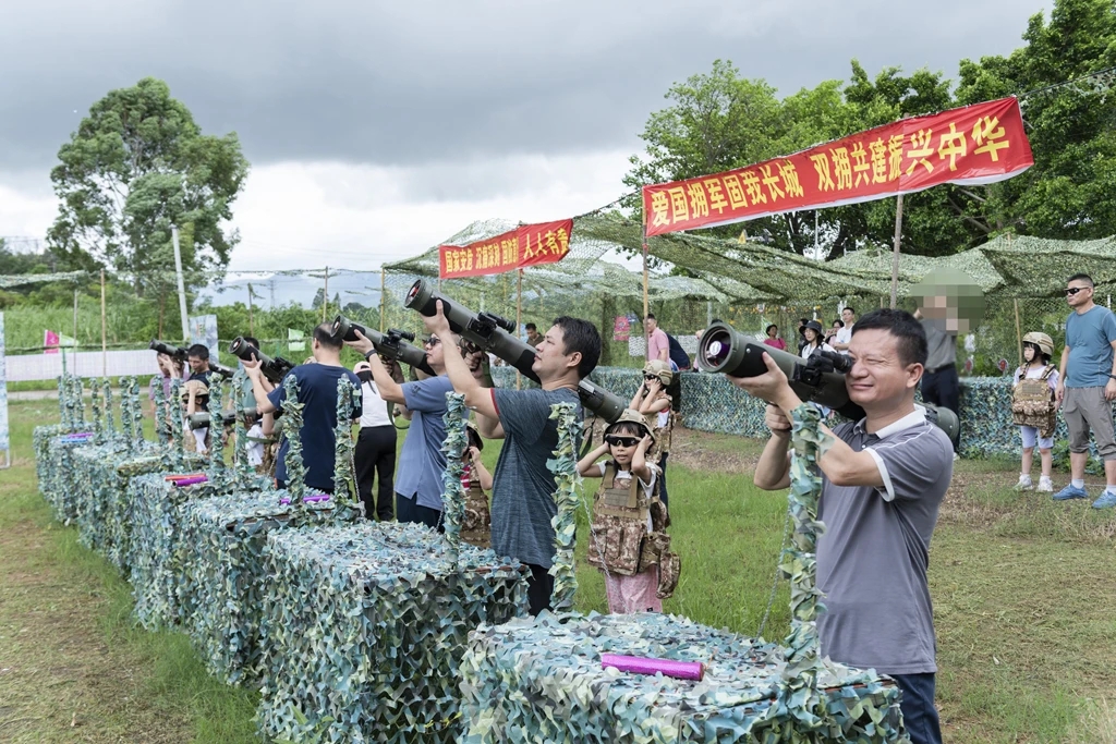 走進(jìn)潼湖軍墾基地,營(yíng)院張貼的強(qiáng)軍標(biāo)語(yǔ)、國(guó)防教育圖片燃起了大家心中的熱火。在國(guó)防軍事科技展廳,實(shí)物、展板等充分展示了我國(guó)軍種類型、主戰(zhàn)武器裝備,黨的建軍歷史、發(fā)展歷史,航天技術(shù)的主要成就;在大型設(shè)備展區(qū),東風(fēng)21導(dǎo)彈、殲-20戰(zhàn)斗機(jī)、99A式主戰(zhàn)坦克等各類先進(jìn)武器裝備模型讓人目不暇接!皣(guó)之重器”振奮人心,大家的民族自豪感和自信心油然而生。