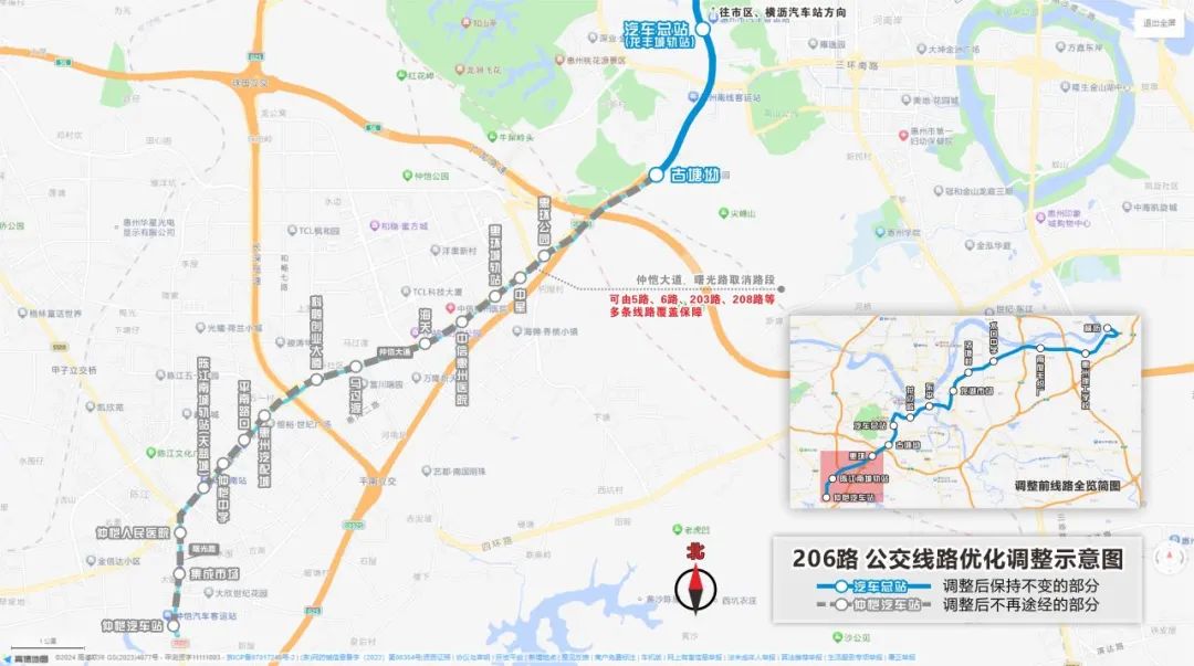 線路調(diào)整:取消惠環(huán)公園至仲愷汽車站路段,線路截短至古塘坳。