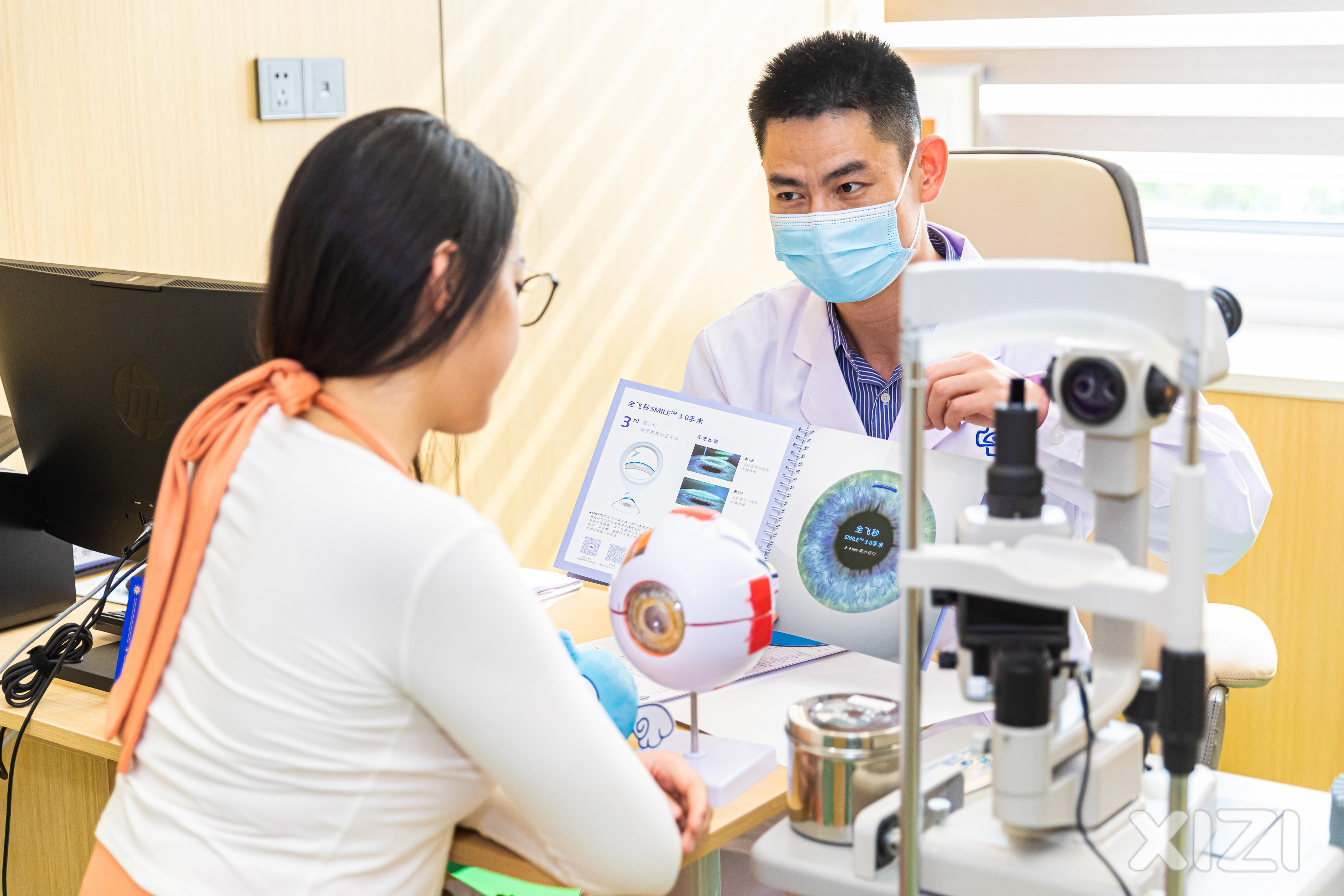 惠州明康眼科醫(yī)院副院長高穩(wěn)生向患者介紹摘鏡方案。