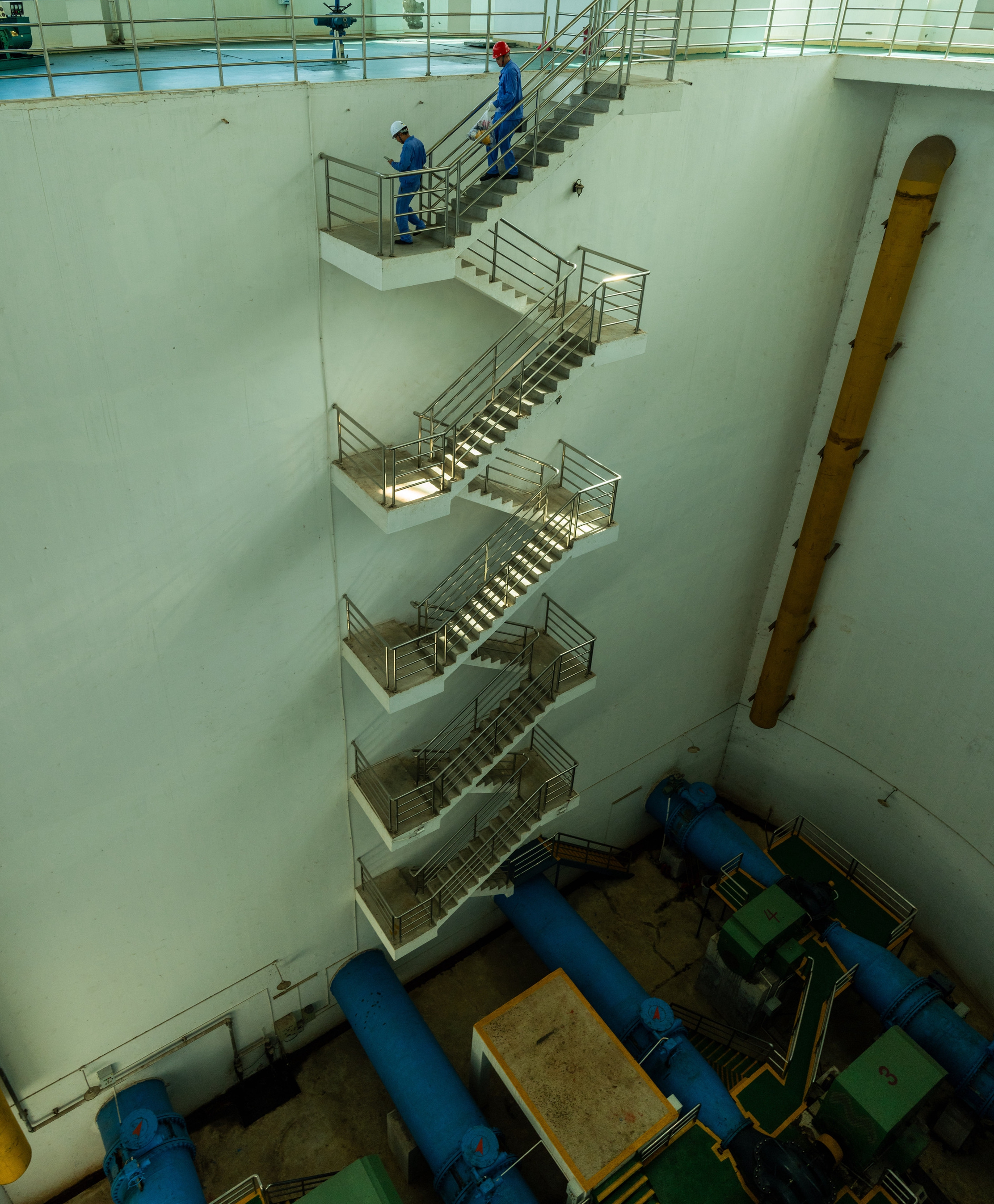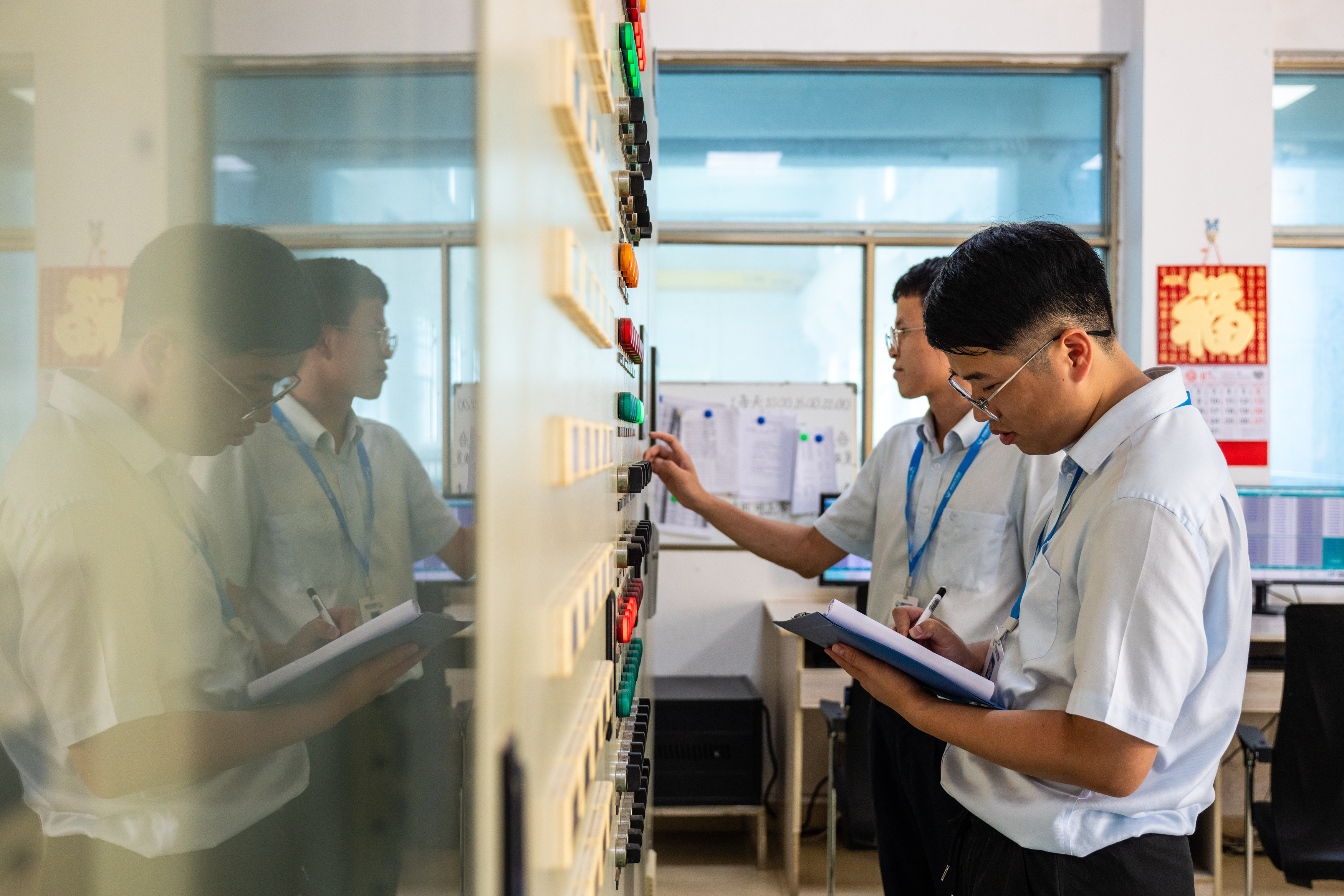 在位于仲愷高新區(qū)潼湖鎮(zhèn)新光村東江邊的潼湖水廠取水泵房,工作人員從狹窄的樓道下至地下9層泵池,汗水很快就浸濕了后背。在嘈雜的機器設備轟鳴聲中,他們忙著巡查機組設備,檢查電機、水泵,查看是否有漏水情況,冷卻水是否正常等。除此以外,他們每天還要到取水口旁,觀測東江原水情況!颁畯S擔負著仲愷區(qū)域約60萬人的用水重任。現(xiàn)在正是用水高峰期,我們加大了巡查力度,加強了對設備的維護管理,以確保安全優(yōu)質供水!变畯S吸水組組長卓振譽說。