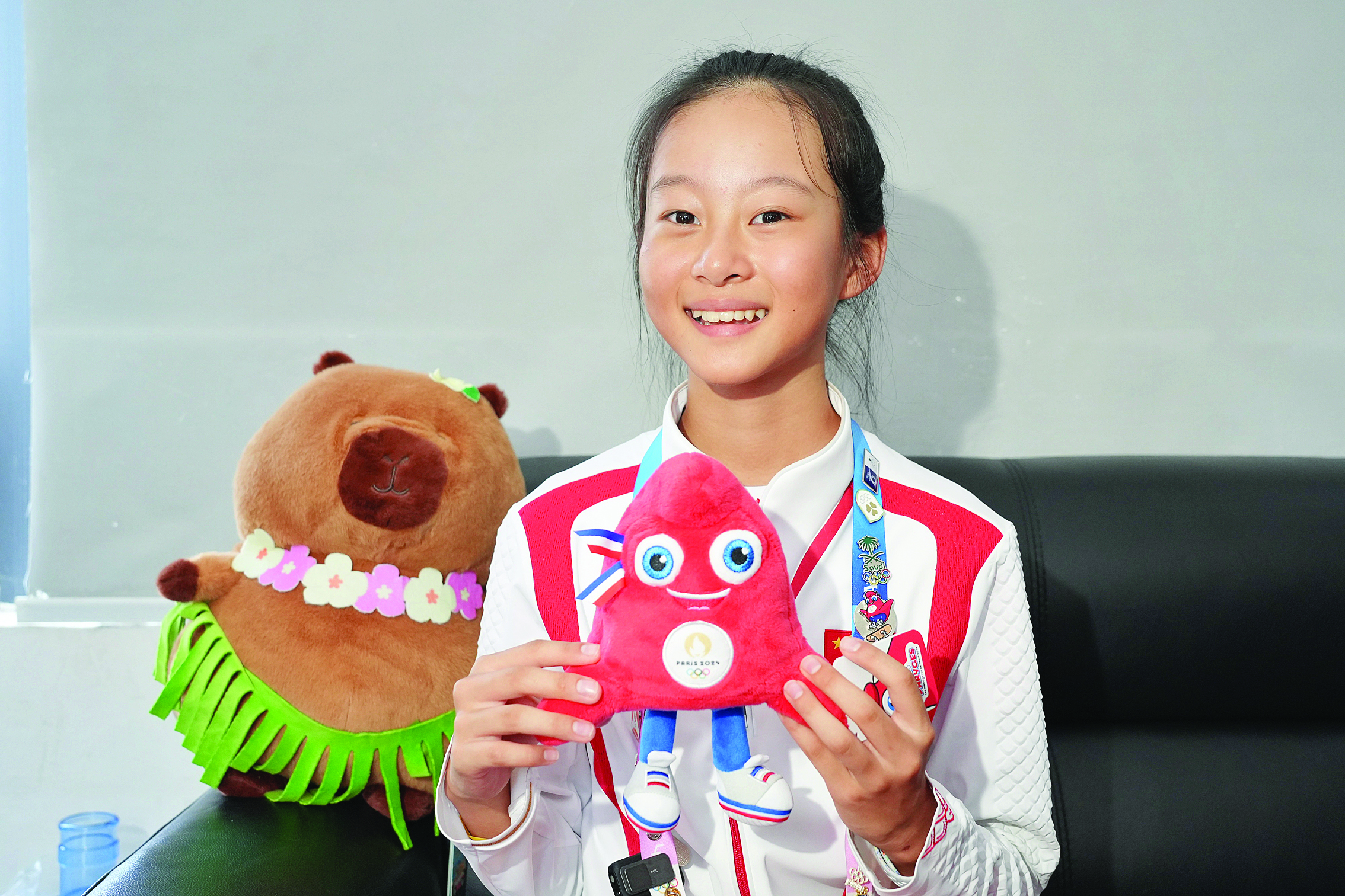 穿著紅白相間的國家隊(duì)服,脖子上的運(yùn)動(dòng)員證掛著各種pin(奧運(yùn)徽章),手拿著巴黎奧運(yùn)會(huì)吉祥物“弗里熱”,鄭好好帶著招牌式燦爛笑容回到了夢(mèng)開始的地方——惠州市體育運(yùn)動(dòng)學(xué)校的滑板場(chǎng);葜菔形幕瘡V電旅游體育局為鄭好好準(zhǔn)備了“卡皮巴拉”玩偶,“小孩姐”鄭好好瞬間變回了孩子的模樣,對(duì)玩偶愛不釋手。
