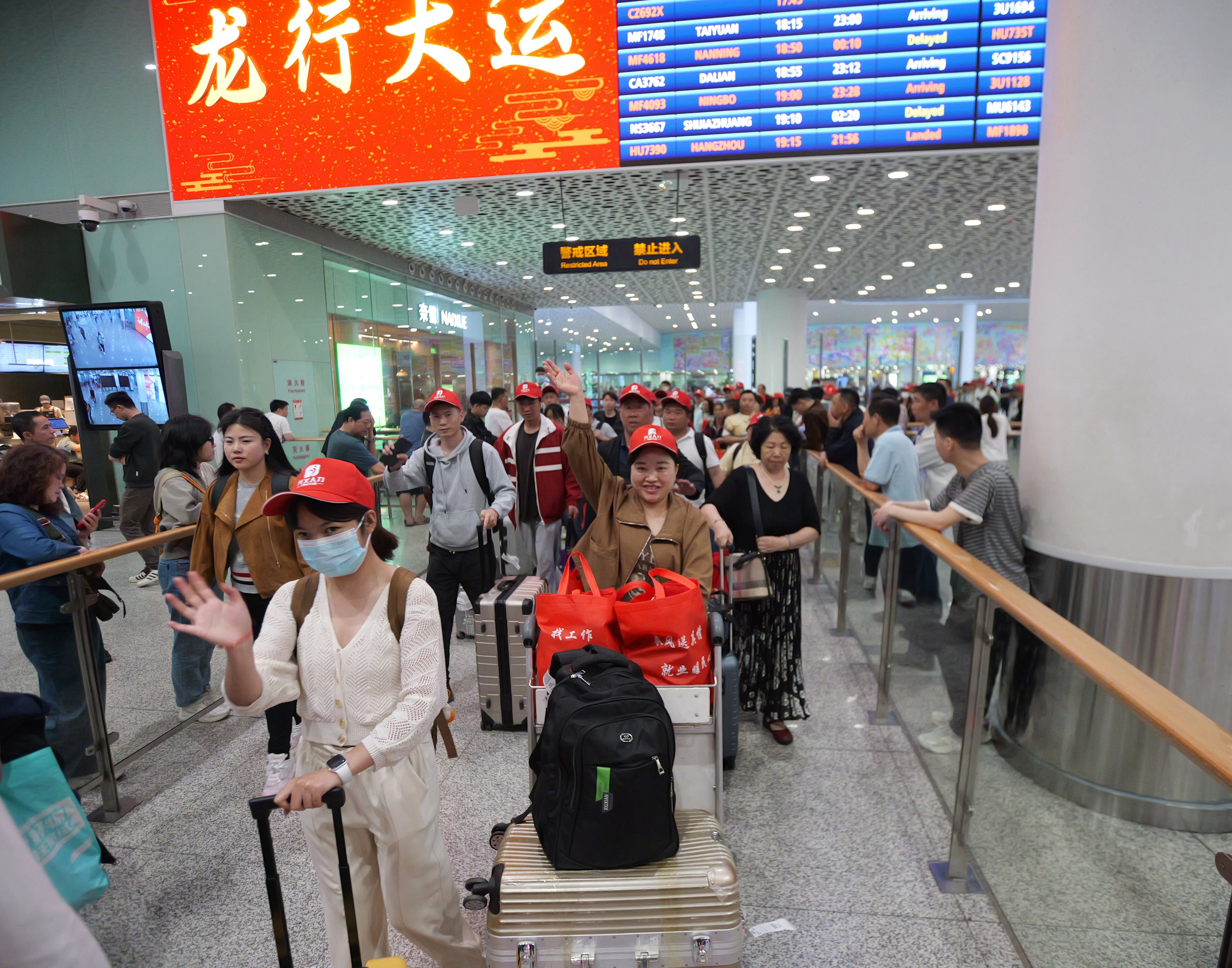 來自黔西南州的返崗務(wù)工人員,乘坐專機(jī)抵達(dá)深圳,再乘坐大巴返回惠州的企業(yè)。