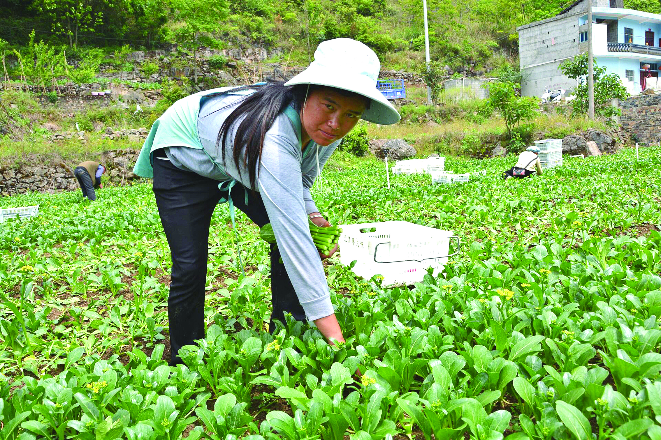 村民在冊亨縣冗渡鎮(zhèn)壇坪壩區(qū)蔬菜種植基地采收菜心。