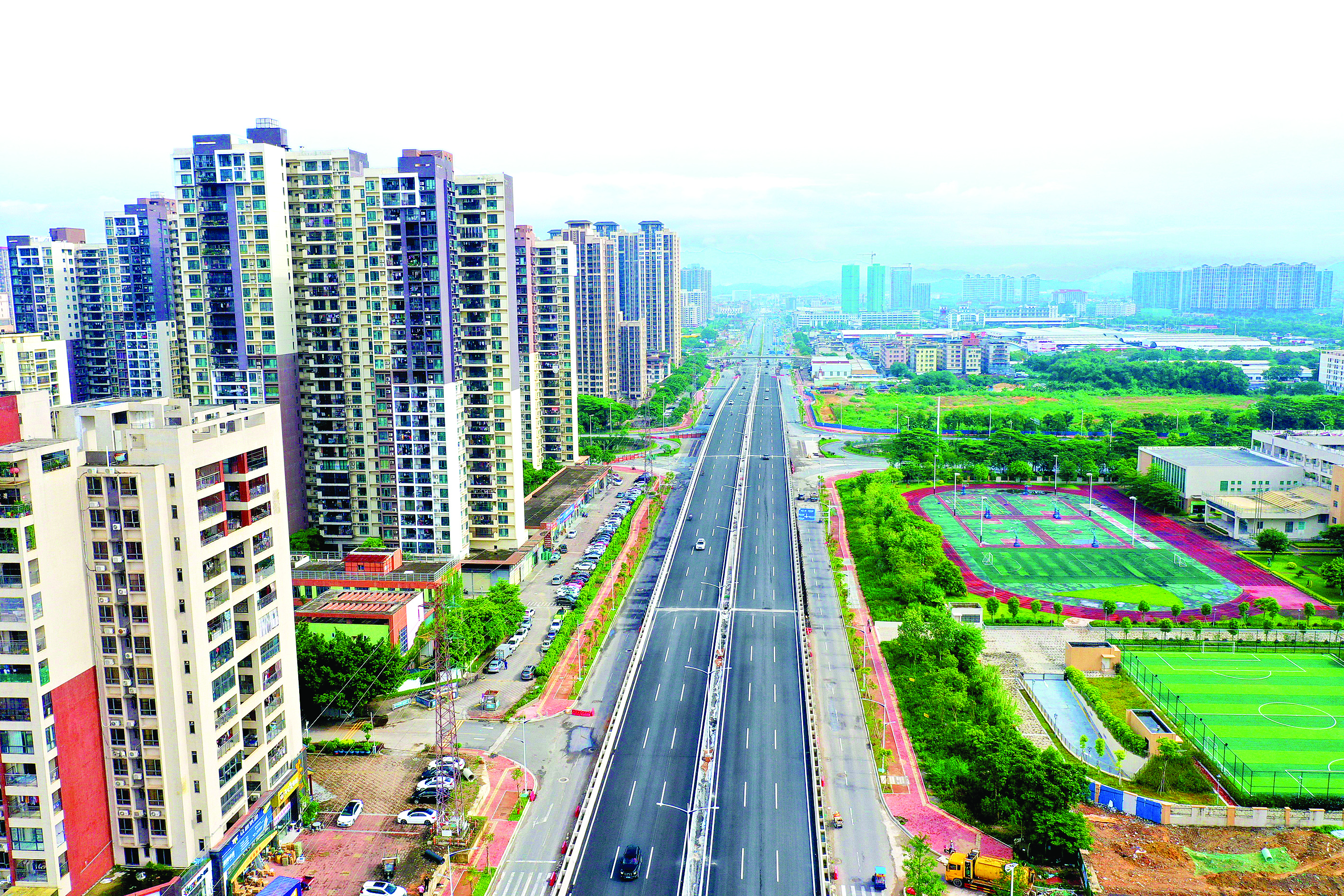 交通帶動產(chǎn)業(yè),產(chǎn)業(yè)支撐城市。這是市區(qū)金龍大道。 惠州東江圖片社供圖
