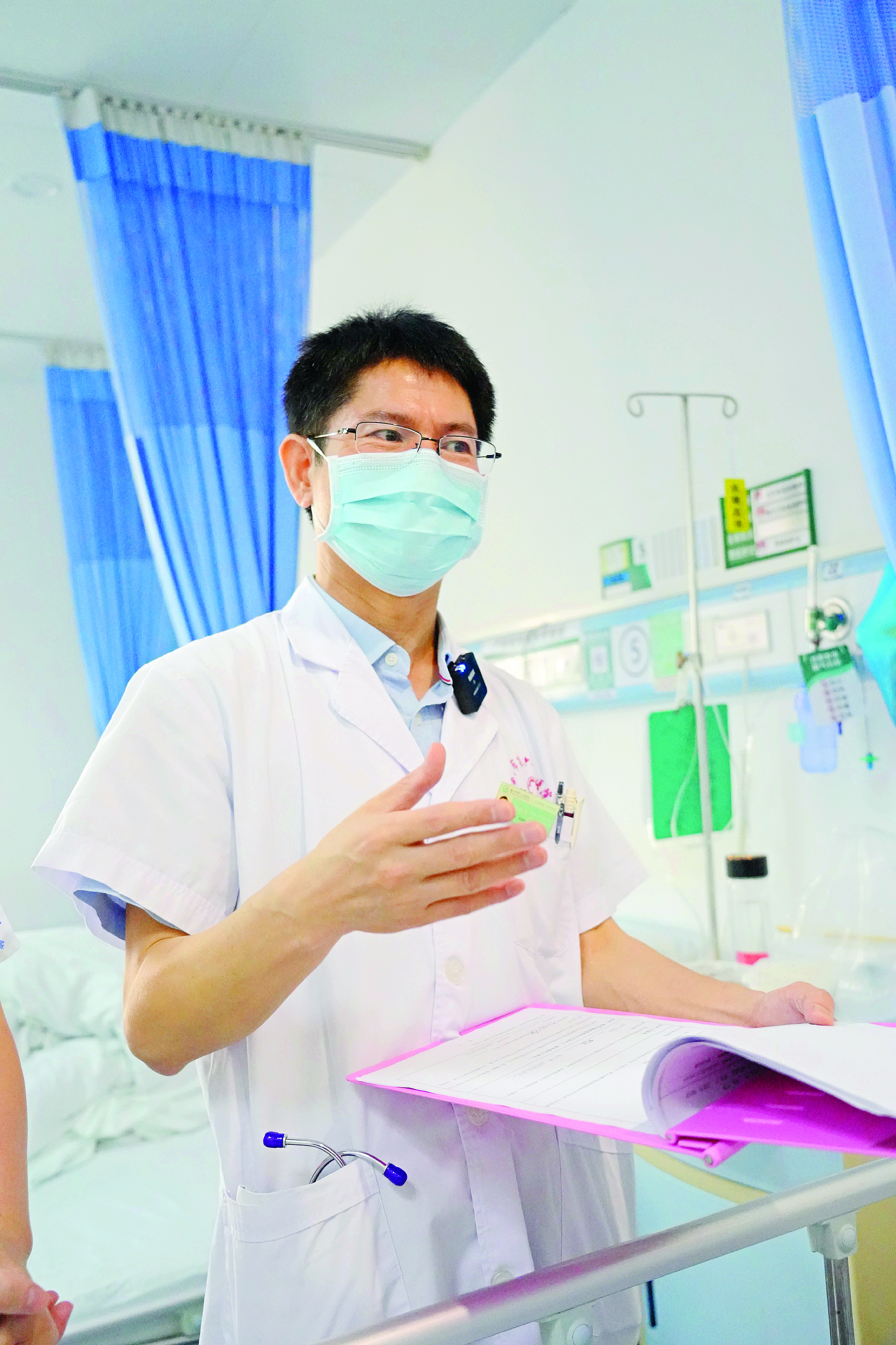 “今早測(cè)的血糖值多少?”“降下來(lái)了,才六點(diǎn)幾!痹诨葜萘篒CU,張繼友到住院病人床邊查看血糖數(shù)據(jù),詢問(wèn)患者阿霞的飲食和生活情況。“不要急,請(qǐng)相信我們,血糖一定可以控制好的。”面對(duì)因不了解病情而著急的患者,張繼友耐心講解糖尿病患者應(yīng)注意的事項(xiàng),并聆聽每位患者的生活習(xí)慣,給予控糖建議。