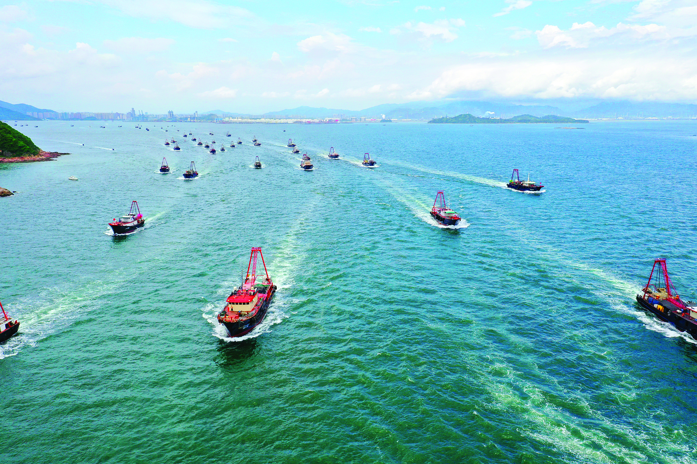 8月16日12時(shí),為期3個(gè)半月的南海伏季休漁期正式結(jié)束。在惠東縣、大亞灣海域,漁民們把船只裝飾一新,伴隨著發(fā)動(dòng)機(jī)的轟鳴聲,漁船紛紛拔錨起航,駛離港口,沉寂許久的漁港也變得熱鬧起來,千帆競(jìng)發(fā)向海爭(zhēng)“鮮”的場(chǎng)景再次上演。