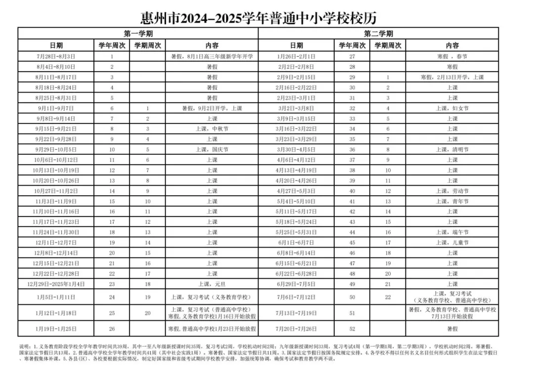 惠州2024~2025學(xué)年中小學(xué)開學(xué)時間