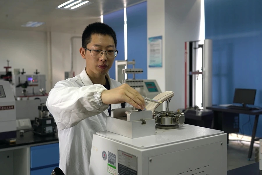 這是一家2022年才在惠東開業(yè)的鞋廠,引進(jìn)了溫州一家鞋企的橡塑發(fā)泡材料用于生產(chǎn)坡跟女鞋等,相比傳統(tǒng)的厚鞋底,這種材料制作的鞋底輕便不累腳,可以把女鞋穿出運(yùn)動鞋的腳感,廣受消費(fèi)者青睞!拔覀兊目蛻魧ζ焚|(zhì)管控要求高,要出一份檢測報告給他,主要檢測耐磨性和環(huán)保相關(guān)指標(biāo)!痹摴靖笨偨(jīng)理黃惠標(biāo)表示,在國家鞋檢中心投用前,公司要檢測得把產(chǎn)品送到廣州或東莞,檢測一次要花幾百到上千元,時間和資金成本不少,家門口有了國家鞋檢中心后,不僅方便還免費(fèi),幫助企業(yè)降本提質(zhì)。