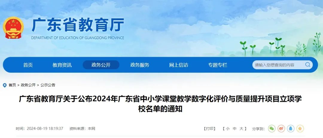 快看!省教育廳公布2024年廣東省中小學(xué)課堂教學(xué)
