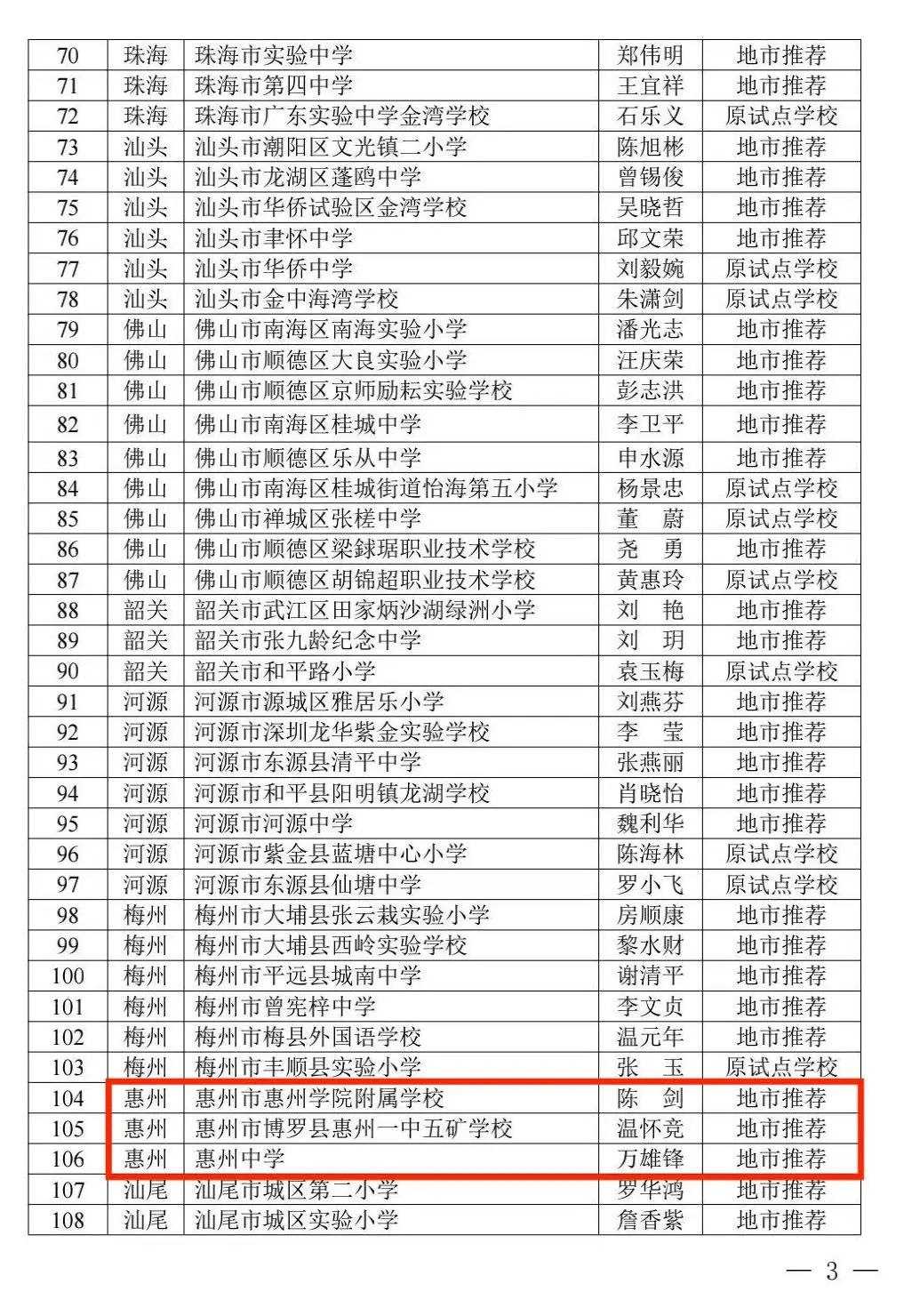惠州3所中小學(xué)入選項(xiàng)目立項(xiàng)名單: