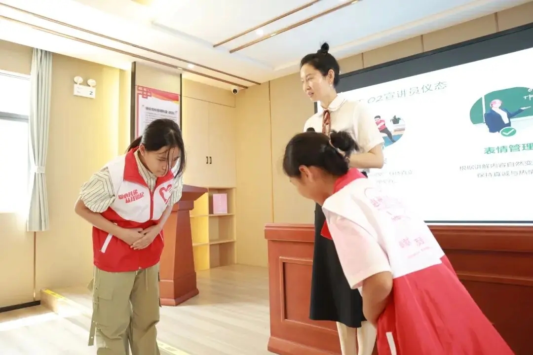 志愿者展示宣講禮儀。