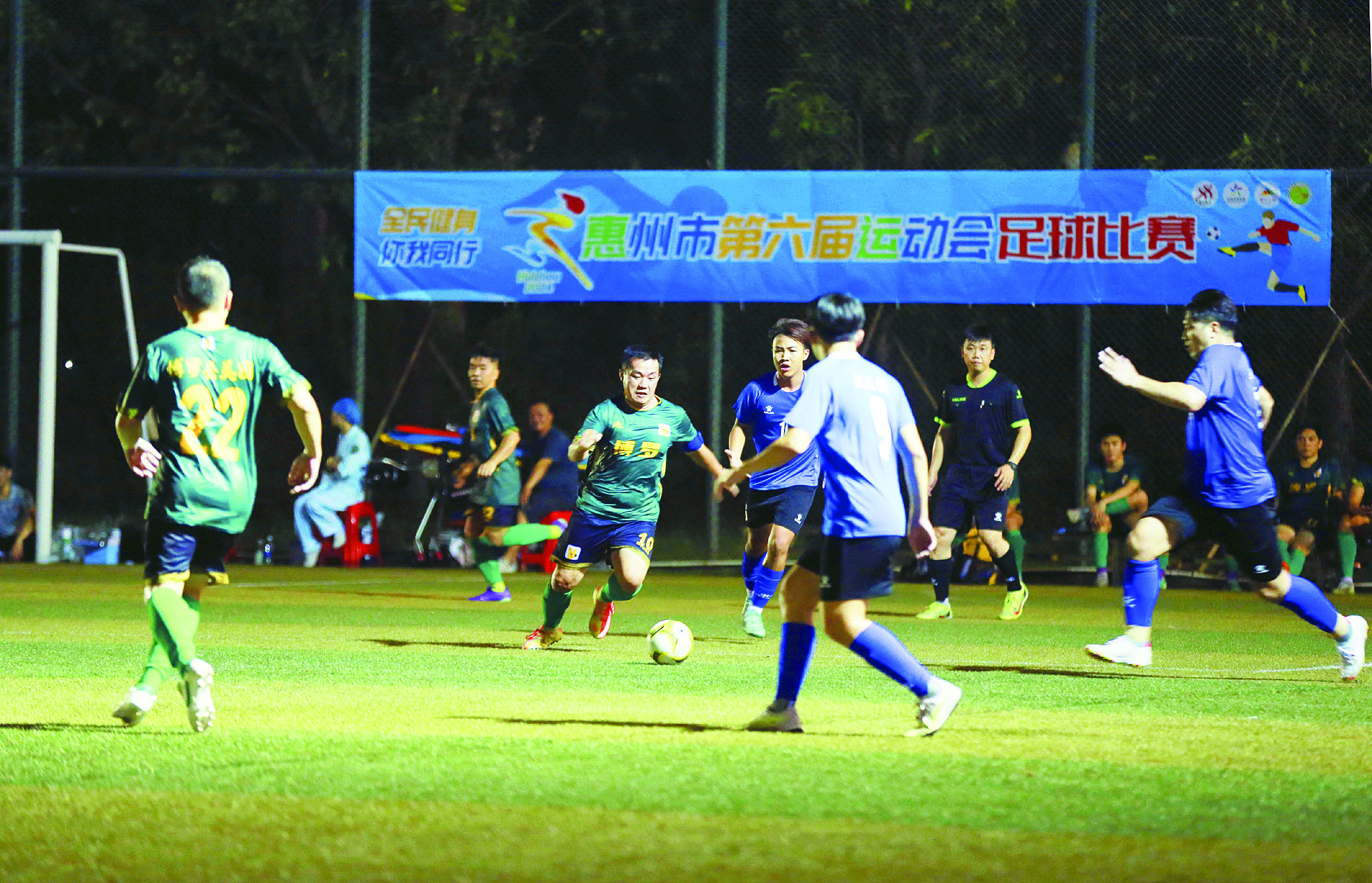惠州日報訊 (記者龔妍)隨著裁判員一聲哨令,雙方球員開始爭奪足球,你踢我搶,競爭激烈……8月27日,惠州市第六屆運動會足球項目比賽正式打響,縣區(qū)組惠東縣和惠陽區(qū)、市直機關組市中心人民醫(yī)院和市稅務局率先“開戰(zhàn)”,他們在綠茵場上不斷奔跑的身姿和激烈的攻防,盡顯惠州足球昂揚向上、奮力拼搏的精神風貌。