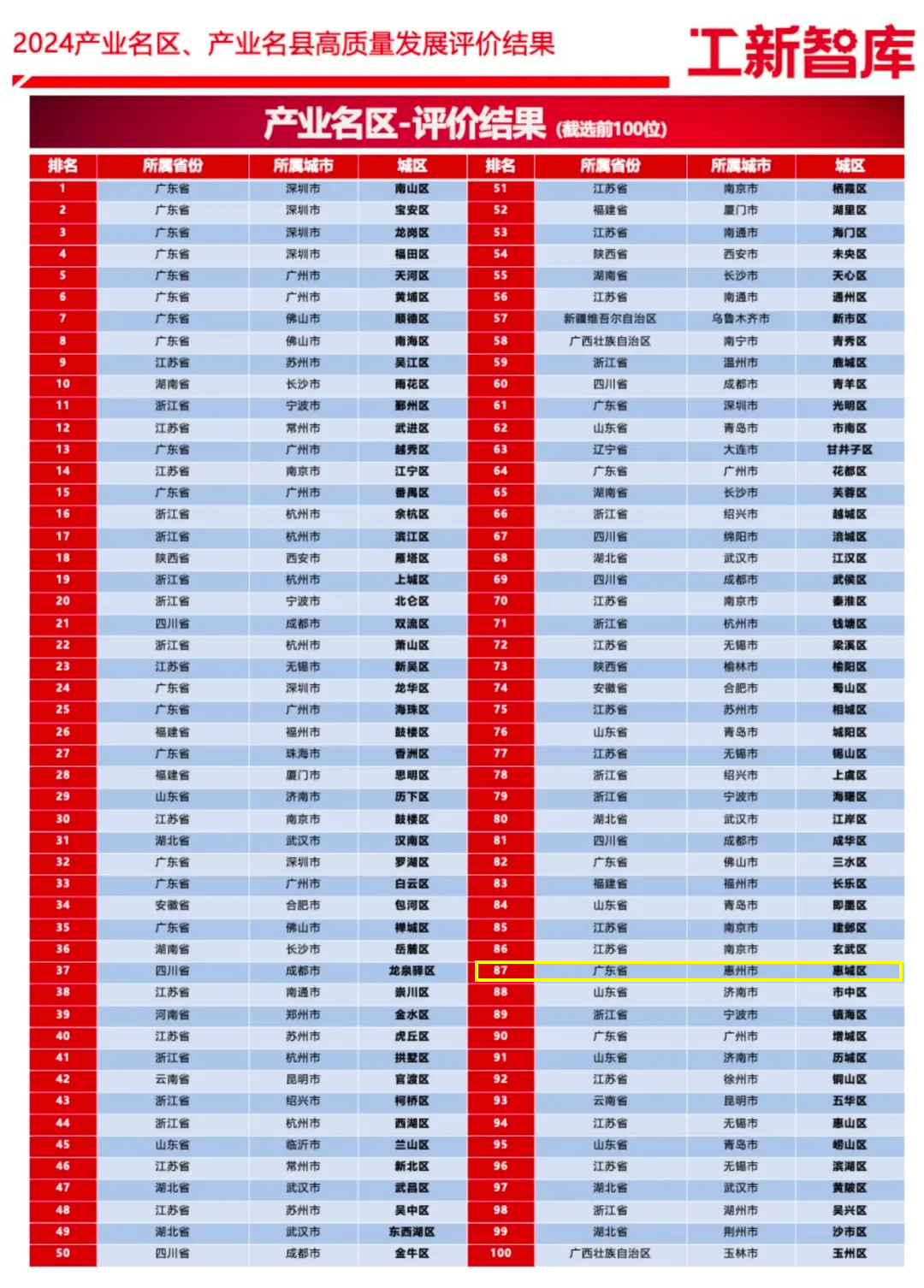 2024產(chǎn)業(yè)名區(qū)高質(zhì)量發(fā)展“百強”榜單,排名87。