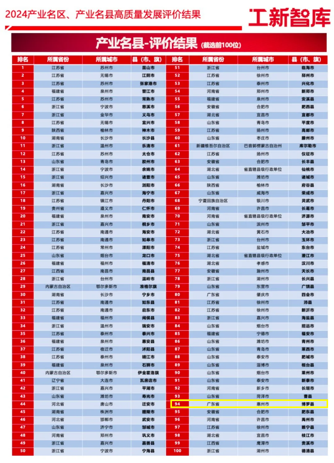 2024產(chǎn)業(yè)名縣高質(zhì)量發(fā)展“百強”榜單,排名94。