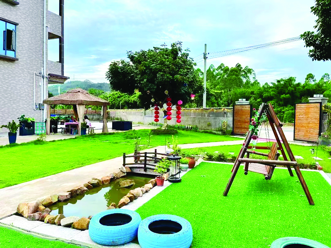 惠城區(qū)橫瀝鎮(zhèn)墨園村因地制宜設(shè)置兒童活動廣場。