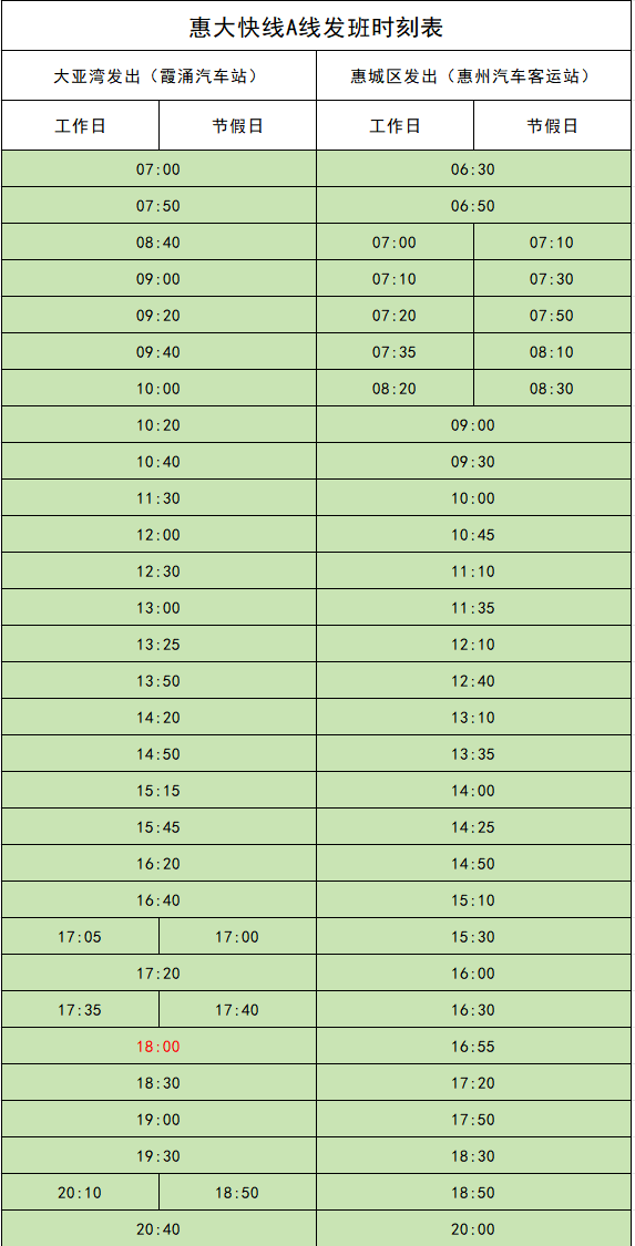 惠大快線A線(霞涌汽車站——惠州市汽車客運(yùn)站)