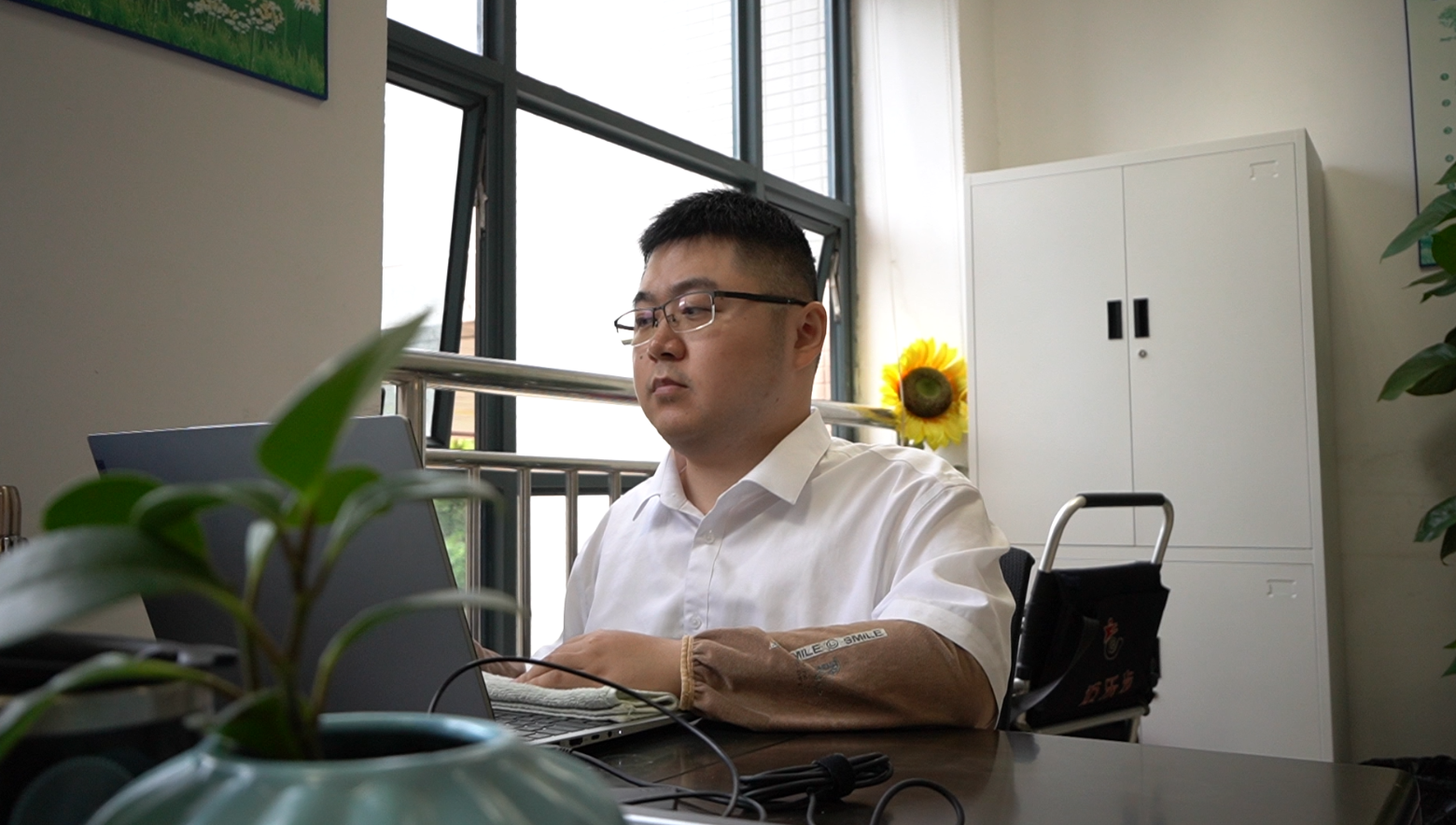 他便是惠州城市職業(yè)學(xué)院學(xué)生發(fā)展中心、馬克思主義學(xué)院心理學(xué)教師陳斌。7歲那年,陳斌患上進(jìn)行性肌營(yíng)養(yǎng)不良癥,在與這種“讓人全身肌肉漸漸失去力量”的疾病對(duì)抗中,從惠州前行到清華大學(xué),從清華博士再到惠州城市職業(yè)學(xué)院心理學(xué)教師,“勵(lì)志斌”的故事激勵(lì)了成千上萬(wàn)的惠州學(xué)子。