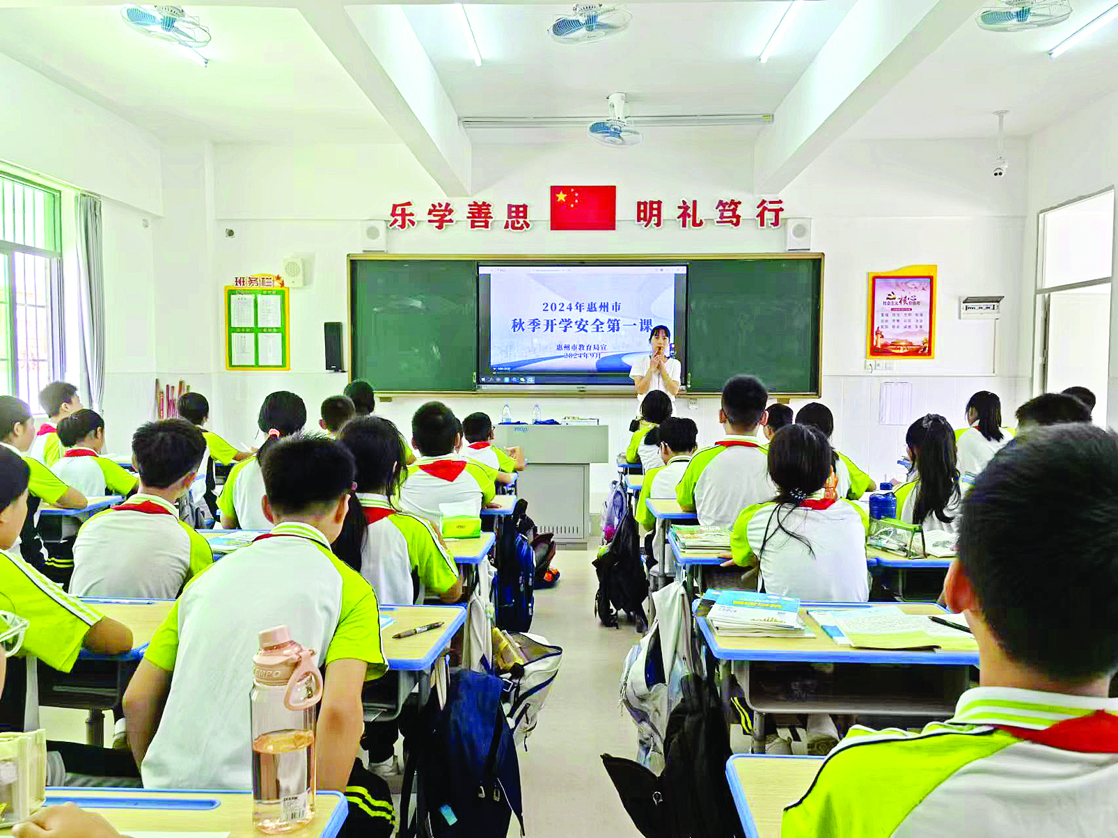 開學(xué)伊始,安全先行。記者從市教育局了解到,2024年秋季學(xué)期開學(xué)第一天,惠州市中小學(xué)、幼兒園分學(xué)段、分年級(jí)開展了“開學(xué)安全第一課”和消防應(yīng)急疏散演練,學(xué)生們?cè)诎嘀魅蔚膸ьI(lǐng)下觀看預(yù)防溺水、預(yù)防學(xué)生欺凌和交通安全等教育警示片,近距離觀察和使用滅火器,強(qiáng)化安全意識(shí)和自我保護(hù)能力。