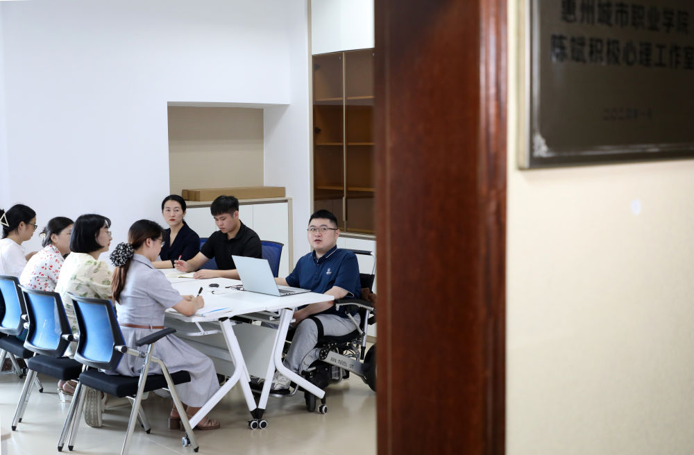 陳斌在積極心理工作室與教師探討。新華社記者 黃國(guó)保 攝