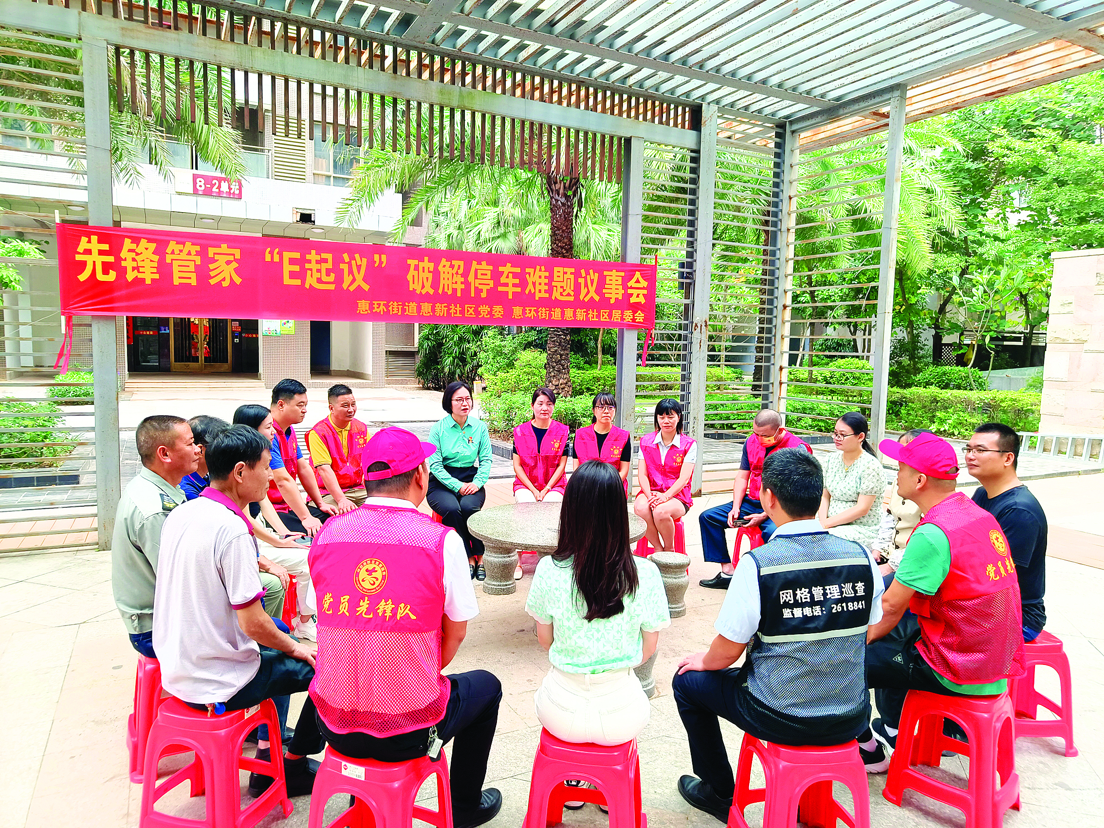 仲愷惠環(huán)惠新社區(qū)“先鋒管家”議事會(huì)現(xiàn)場(chǎng),社區(qū)干部、網(wǎng)格員、居民等一起商量社區(qū)治理工作。 圖片由惠新社區(qū)提供