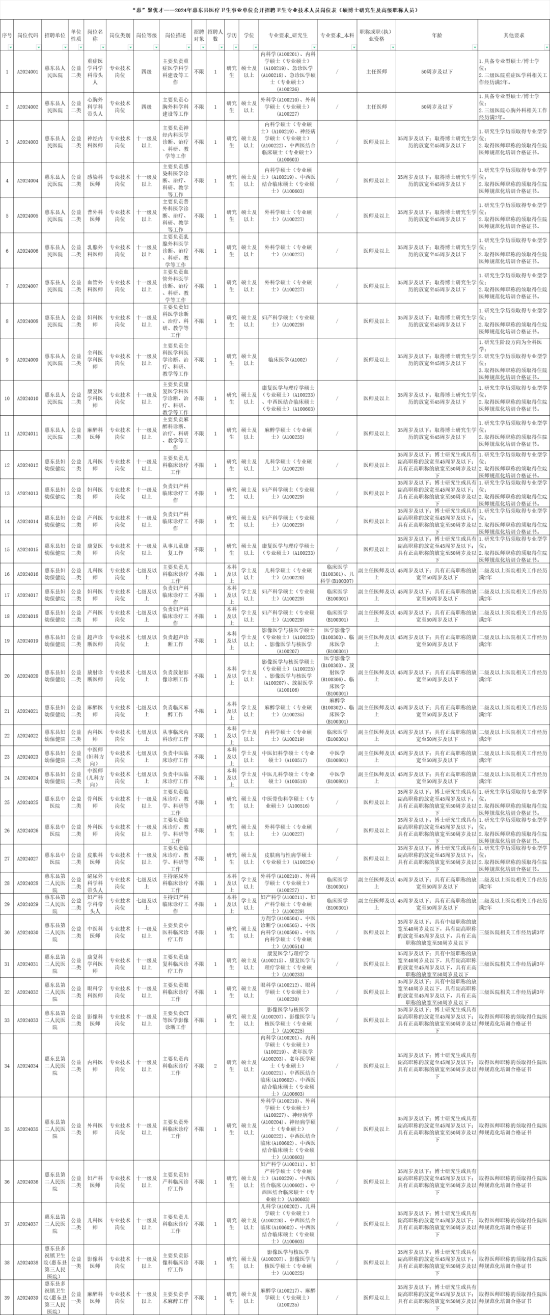 招聘對象及崗位:具有國家承認的大學本科及以上學歷畢業(yè)的人員,共招聘143名衛(wèi)生專業(yè)技術(shù)人員(其中碩博士研究生及高級職稱人員40名,普通類103名)