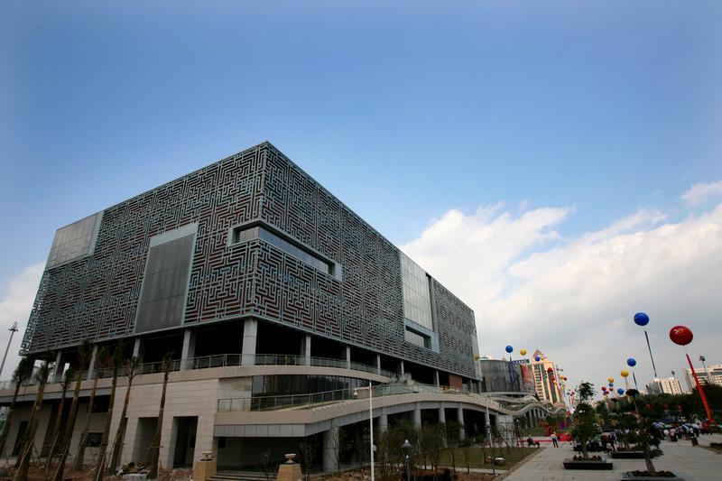 惠州博物館外觀設(shè)計(jì)象征“歷史之印”,大量使用先秦時(shí)期東江流域出土的陶器網(wǎng)格紋元素作為裝飾,厚重而典雅。
