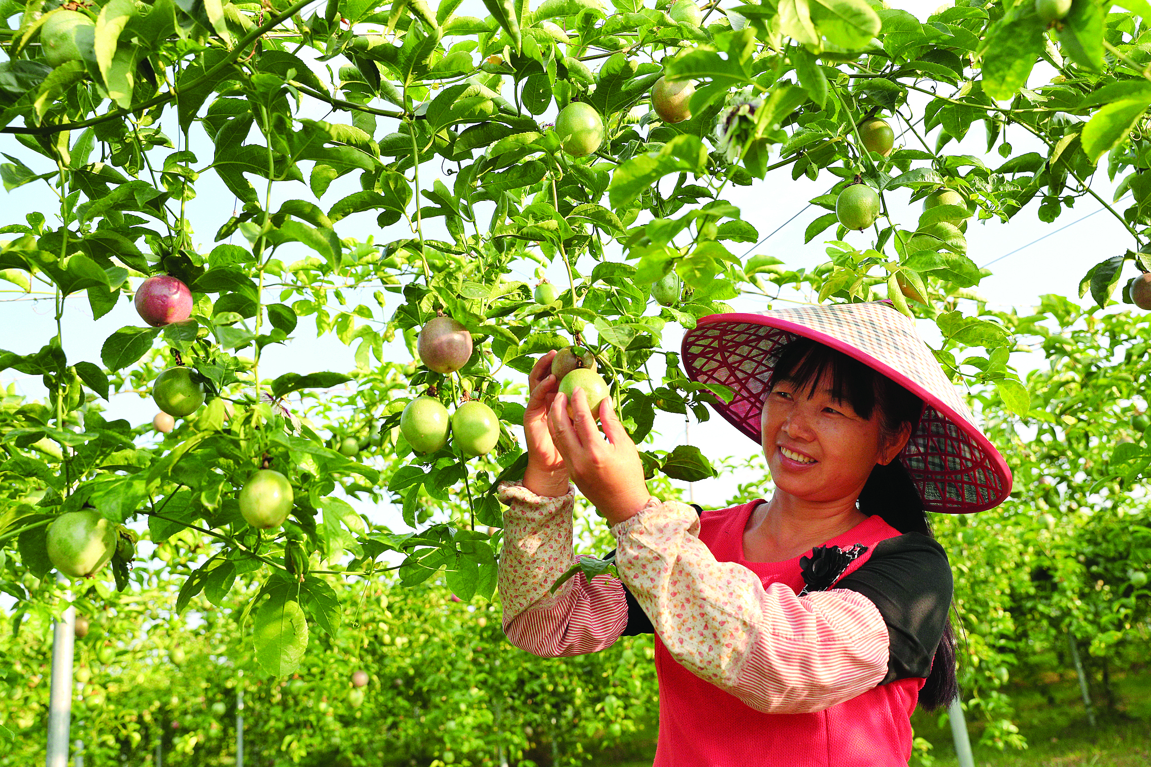 喜收百香果。