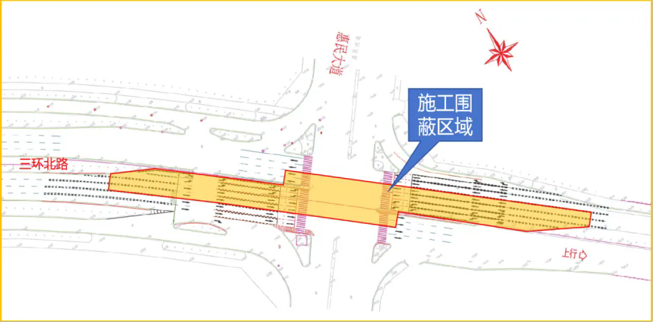 第二階段(約25天):三環(huán)北路/惠民大道交叉口東西向內(nèi)側(cè)8車道封閉,外側(cè)6車道恢復(fù)通行;南北進(jìn)口禁止車輛直行和左轉(zhuǎn),人行橫道禁止行人通行。