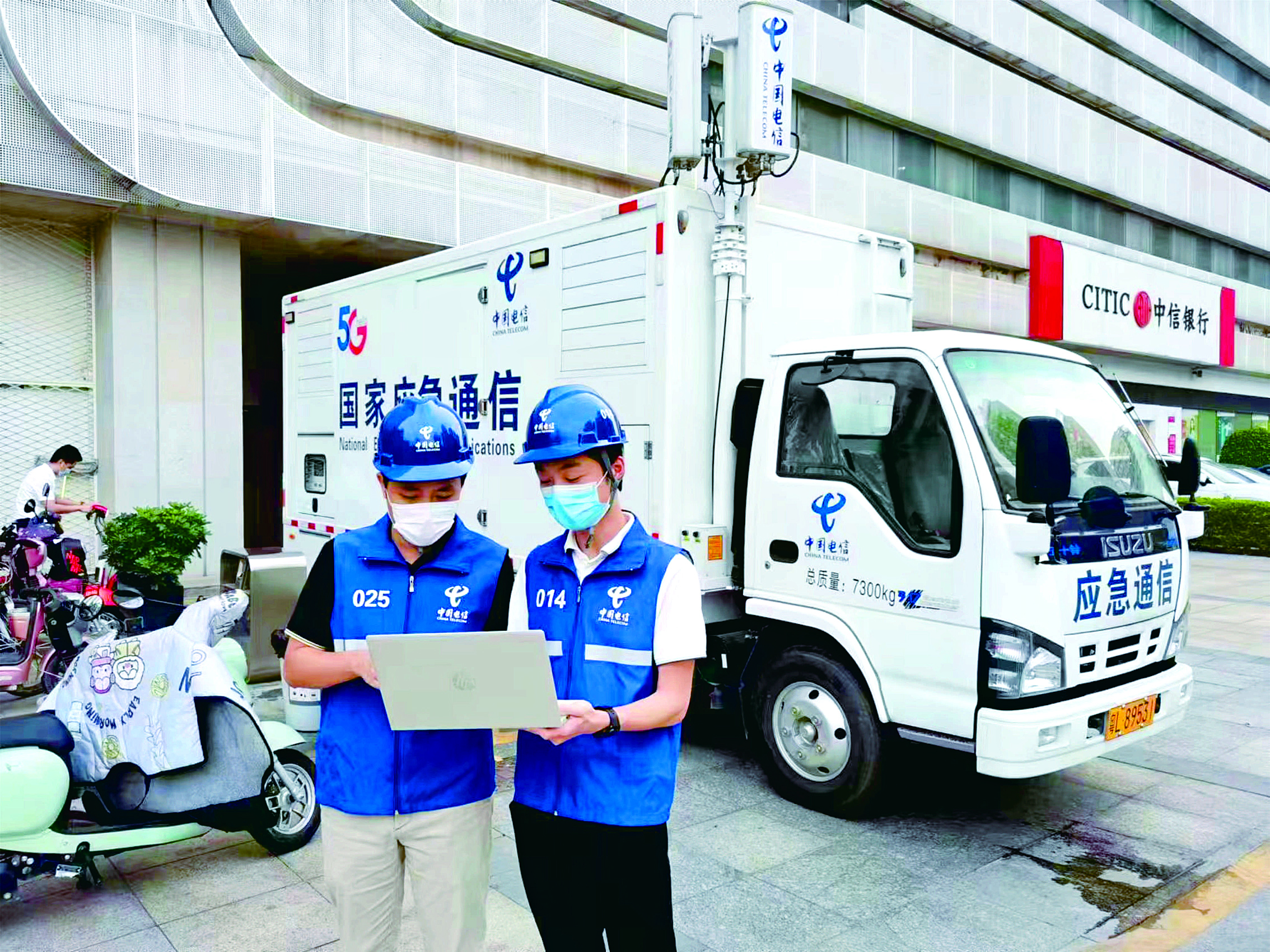 維護人員在仲愷科融大廈附近執(zhí)行通信保障任務(wù)。