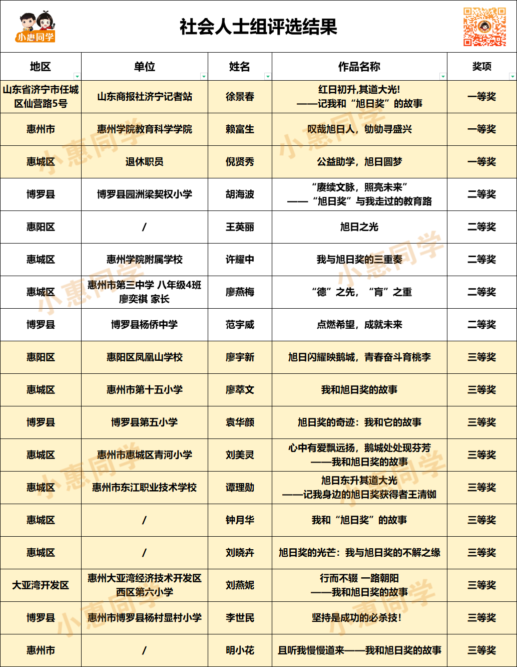 中小學(xué)組評選名單