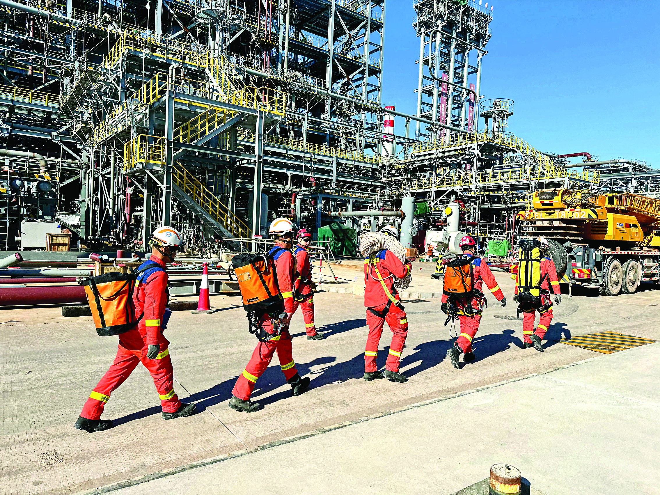 “報告,我隊一名工人在高壓電纜塔上工作時意外墜落,呼叫救援!”“救援隊收到!”這是2023年11月24日,埃克森美孚與惠州隊合作開展安全應急演練的場景。在施工建設階段,為杜絕安全事故發(fā)生、全力以赴保障工人安全,?松梨谂c惠州隊達成合作,實現駐場開展包括安全應急培訓、應急救援待命、每日前置備勤等服務。