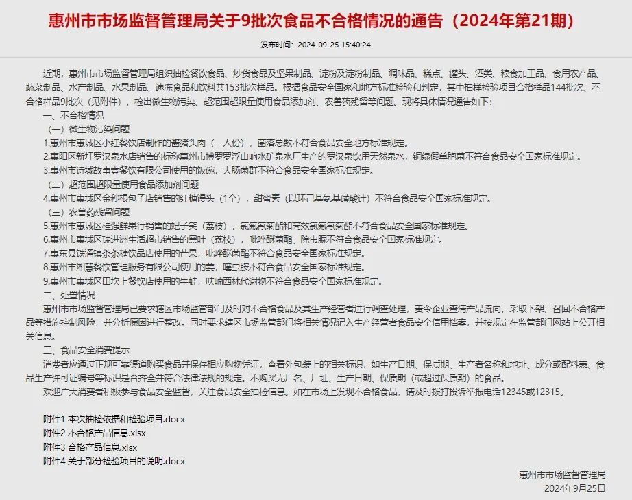 9月份24批次抽檢不合格食品樣品及企業(yè)一覽