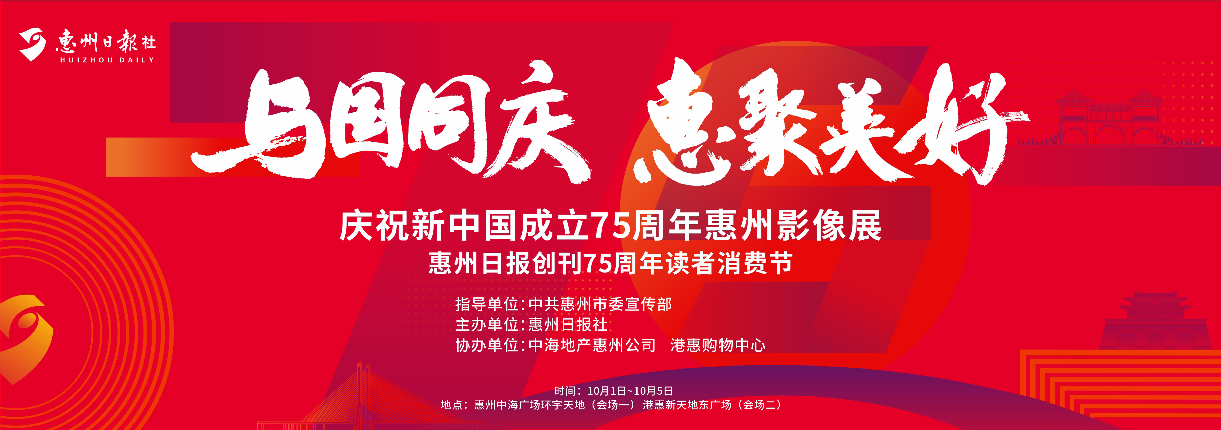 10月1日至5日,由惠州日報社策劃主辦的“與國同慶 惠聚美好”主題系列活動將精彩上演,包括“砥礪奮進 競逐一流”——慶祝新中國成立75周年惠州影像展,以及“惠聚75載 悅購嘉年華”——惠州日報創(chuàng)刊75周年讀者節(jié)等活動,內(nèi)容豐富福利多多,精彩不容錯過。