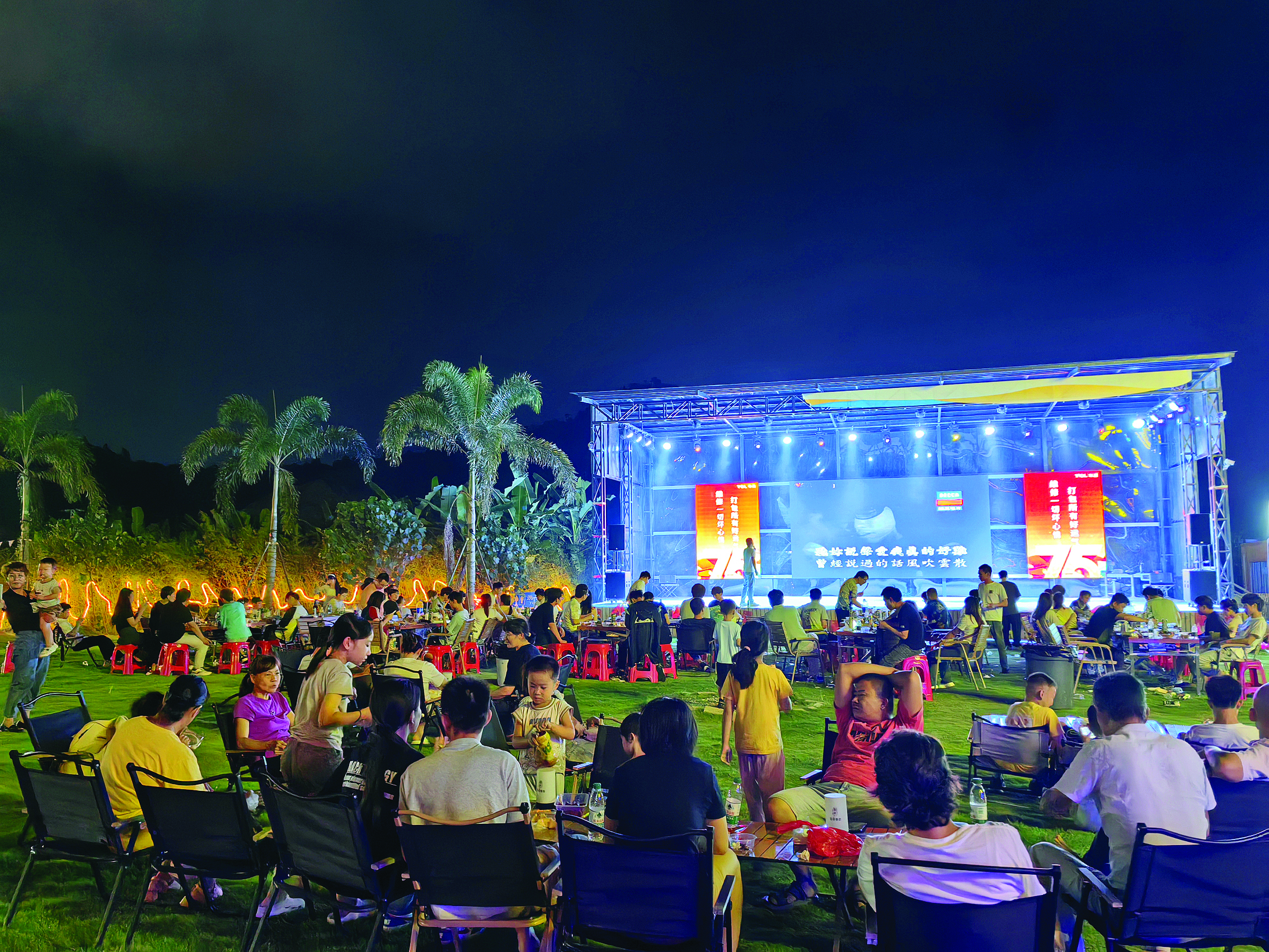 “吹著山風,聞著花香,眼前的這杯咖啡和城市里的沒有什么不同,但喝起來的味道卻真的有些不一樣!痹谌A僑星空營地,基地露營、咖啡奶茶、啤酒燒烤、戶外KTV……在初秋微涼的夜風中,孩子們在青草地上肆意奔跑,大人們“躺平式”放松,或圍坐飲茶閑談、或上臺奏樂彈唱,將歲月靜好擁抱入懷,著實悠哉。