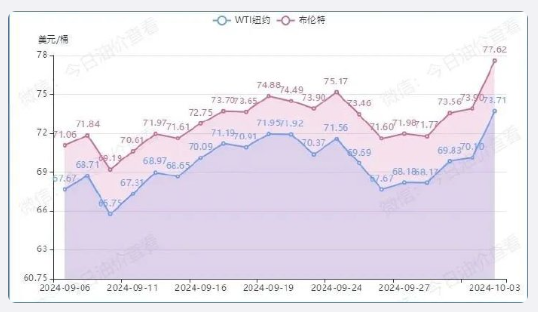 國際油價(jià)10月3日大幅上漲。截至收盤,紐約商品交易所11月交貨的輕質(zhì)原油期貨價(jià)格收于每桶73.71美元,漲幅為5.15%;12月交貨的倫敦布倫特原油期貨價(jià)格收于每桶77.62美元,漲幅為5.03%。