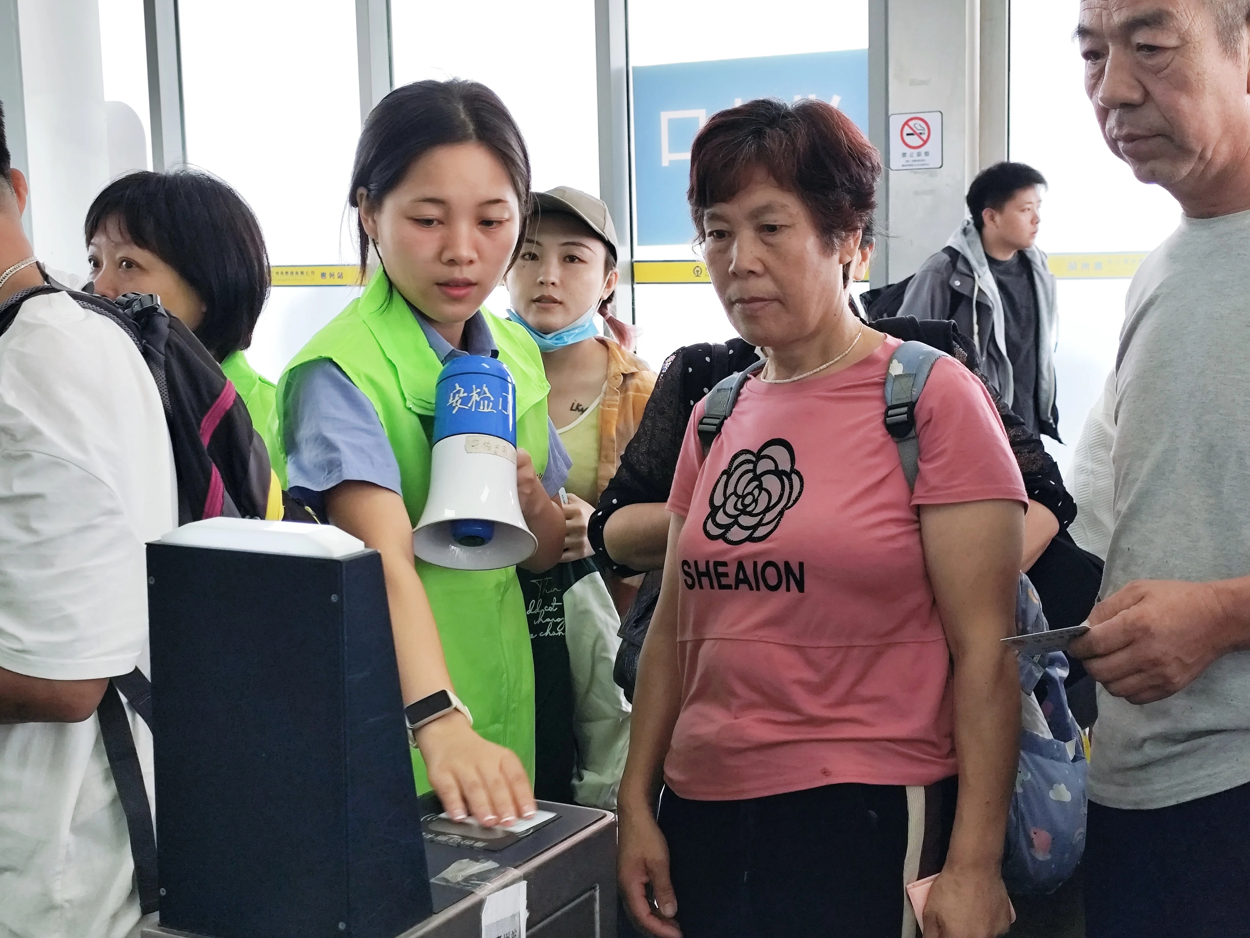 為應(yīng)對國慶假期客流高峰,惠州站組織工作人員加強對設(shè)備設(shè)施運行情況的巡檢,合理規(guī)劃旅客進站安檢、候車乘降、出站流線,實現(xiàn)旅客乘降大客流期間無旅客對流。在電梯、站臺、地道等關(guān)鍵崗位增加人員引導(dǎo),維護旅客乘降秩序。同時,在車站進出站口、“惠民服務(wù)崗”一樓大廳等區(qū)域為老幼病殘孕等重點旅客設(shè)置匯合點,為需要幫助的旅客提供咨詢引導(dǎo)、重點幫扶。