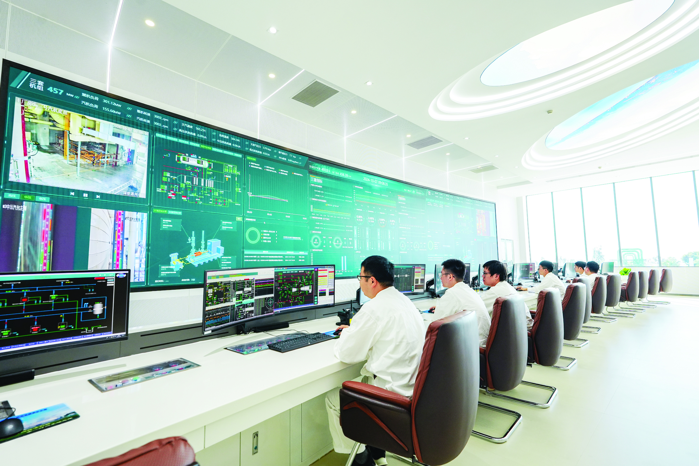 國能惠州電廠工作人員在中控室觀察設(shè)備運行情況。
