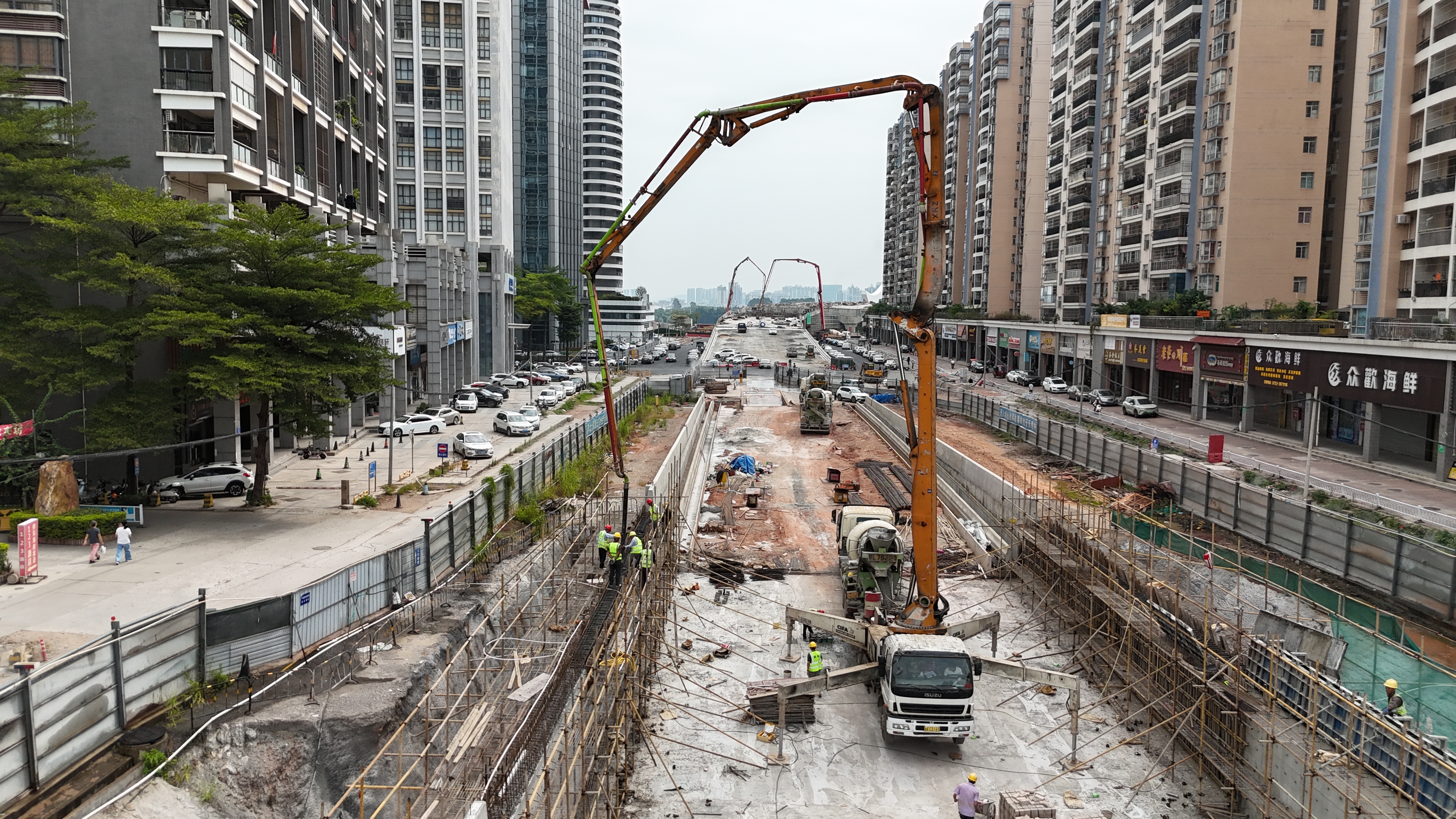 鵝城大橋下穿通道施工現(xiàn)場(chǎng)。惠州日?qǐng)?bào)記者李松權(quán) 黃鑫威 羅劍業(yè) 攝