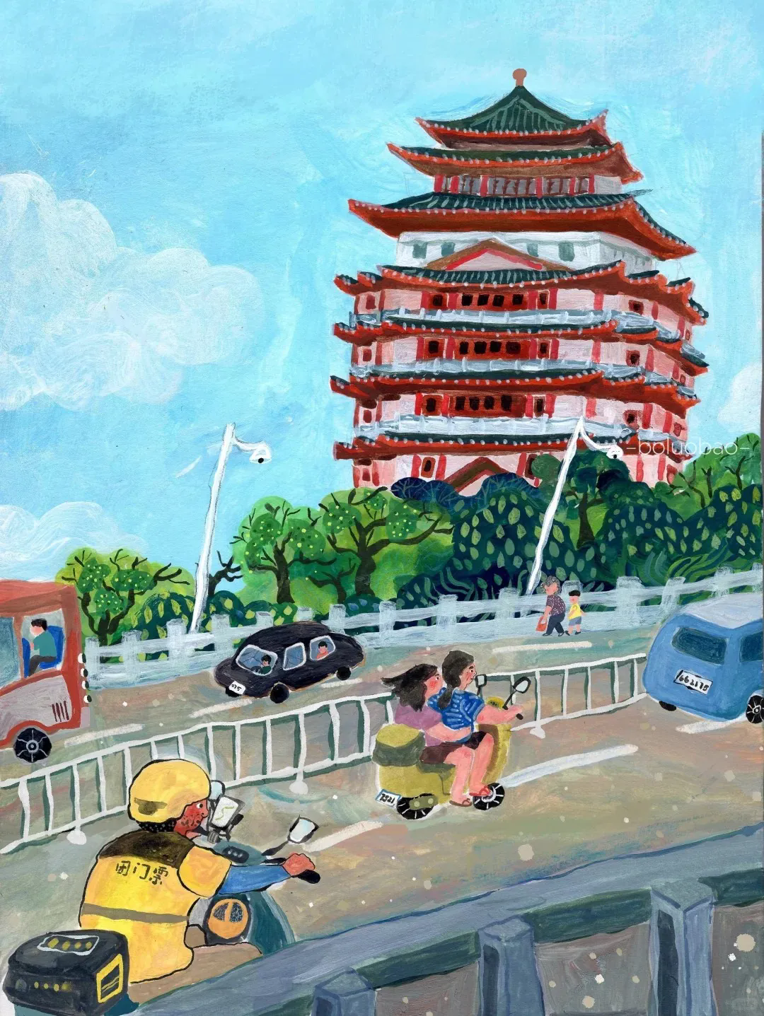 小紅書(shū)達(dá)人@菠蘿包電臺(tái) 就用色彩和線條,記錄下了她眼中的多彩惠州。