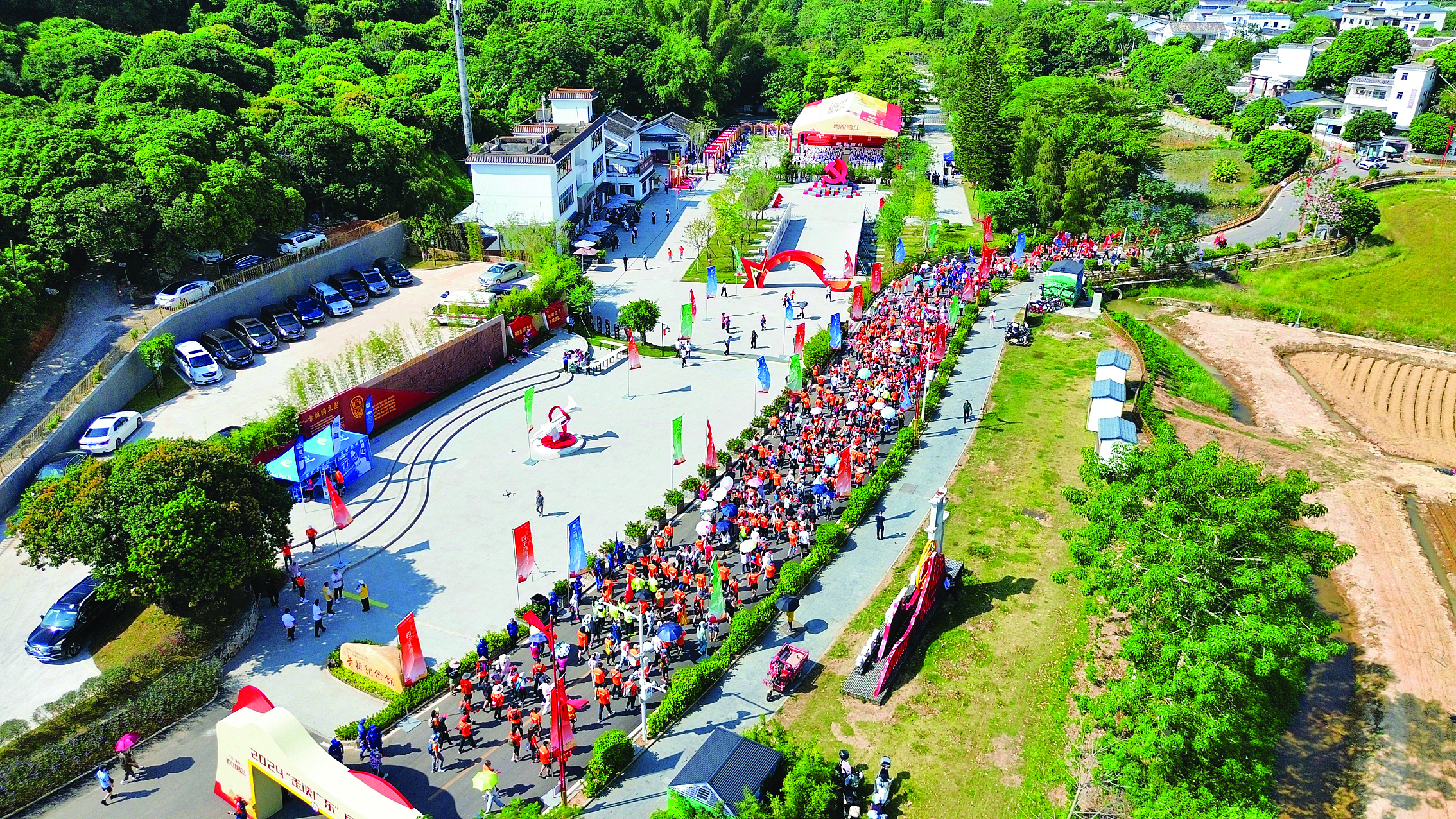 10月16日,惠陽區(qū)陽光明媚、秋風(fēng)送爽,葉挺紀(jì)念館先鋒廣場人潮涌動,這里聚集了前來參加粵游粵紅——第二屆廣東紅色旅游季啟動儀式的近百輛自駕車和近千名徒步愛好者,他們從這里出發(fā),途經(jīng)東湖旅店、羅浮山、葉亞來故居、拱秀樓、榴兆樓等,開啟“走讀廣東 粵游粵紅”旅程,追尋紅色記憶。其中,當(dāng)天的徒步活動途經(jīng)葉挺紀(jì)念館、會龍樓、榴兆樓、廖似光故居等五大紅色景點及多處文物古跡,全程8公里,不僅可以領(lǐng)略惠陽紅色文化,還可以參觀惠陽實施“百千萬工程”的建設(shè)成效——干凈整潔的村容村貌,素墻青瓦的農(nóng)家小院,家家門前常綠蔭,戶戶庭院飄花香。