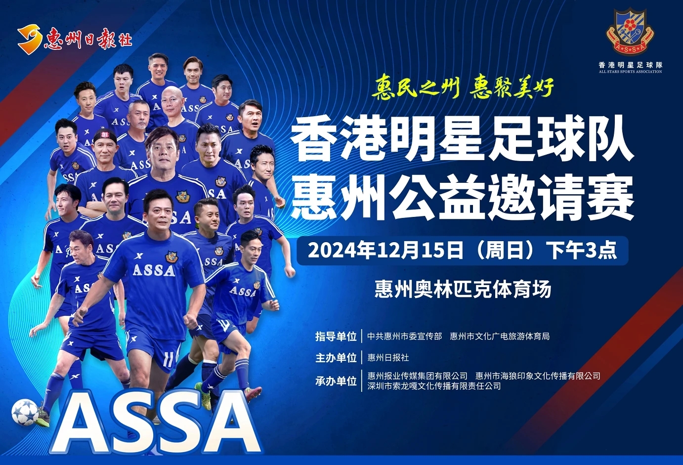 惠州日?qǐng)?bào)訊 (記者龔妍)一大波香港明星要來(lái)惠州啦!“惠民之州 惠聚美好”香港明星足球隊(duì)惠州公益邀請(qǐng)賽將于12月15日在惠州奧林匹克體育場(chǎng)舉行。屆時(shí),譚詠麟、黃日華、何家勁等眾多香港明星將齊聚惠州,為惠州市民帶來(lái)酣暢淋漓的比賽。