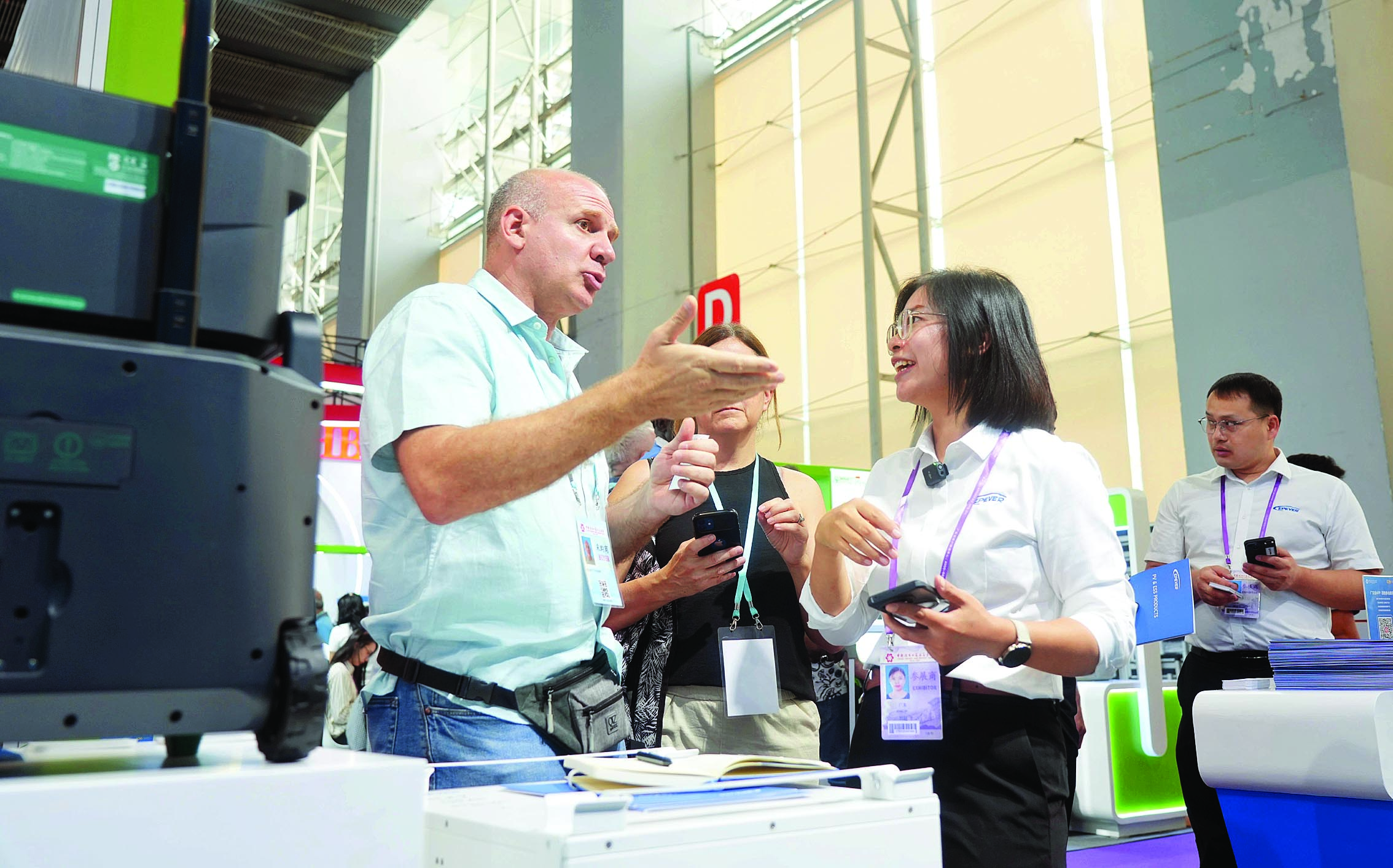 阿根廷采購商在惠州企業(yè)展位洽談。惠州日?qǐng)?bào)記者楊建業(yè) 攝